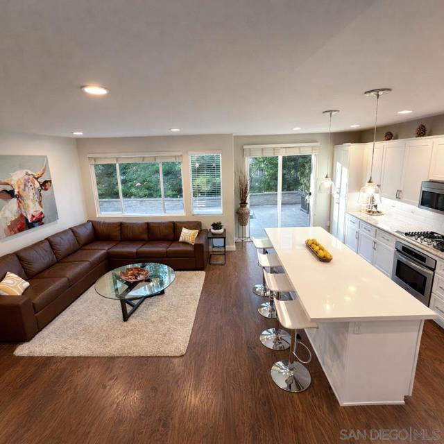 Model-perfect 4 bed + large loft, 3 full bath home with open floor plan, including one full bedroom and bath downstairs. Features include an oversized quartz kitchen island 95” x 42” with seating for 6, 2 fireplaces, laminate floors throughout downstairs and loft, stainless steel appliances, and granite countertops in all bathrooms and upstairs laundry room. Spacious loft provides excellent flex space for office, media, or additional living area. Private backyard for entertaining. Resort-style community amenities include 2 pools, 2 spas, workout facilities, clubhouse, tennis and pickleball courts, children’s play area, walking trail, free fitness classes, and social activities. Prime central location. Just minutes to beaches, bay, downtown, airport, shopping, dining, and major freeways. Close to Miramar Air Station, Coronado Naval bases, 32nd Street and Point Loma Naval Bases, Naval Medical Center and several hospitals.
