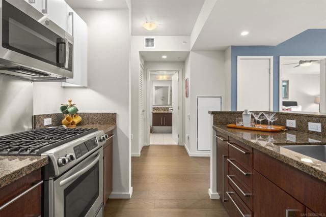 Enjoy breathtaking west-facing views of Petco Park, the bay, and the ocean from this spacious 1 bed/1 bath residence at ICON. Floor-to-ceiling windows and a private balcony showcase the scenery, while the open layout features newer flooring, a granite kitchen with gas range and stainless steel appliances, in-unit laundry, and a recently upgraded HVAC system. Includes 1 prime parking space plus storage. ICON offers exceptional amenities including the Skybox rooftop lounge, fitness center, private theater, clubhouse, and 24/7 security. Located in the heart of East Village/Ballpark District, just steps to dining, nightlife, and entertainment. ICON – Premier Downtown Living. ICON offers one of Downtown San Diego’s best amenity packages, featuring a Rooftop Skybox with BBQs, TVs, and stadium seating overlooking Petco Park and panoramic views of the city, bay, and ocean. Additional highlights include a 1,700 sq ft fitness center, 15-seat movie theater, resident lounge with kitchen, landscaped courtyard, 24/7 security, on-site management, and secured underground parking. All just steps from Petco Park, the Gaslamp Quarter, Rady Shell, trolley, FIT Gym, and top dining and nightlife.