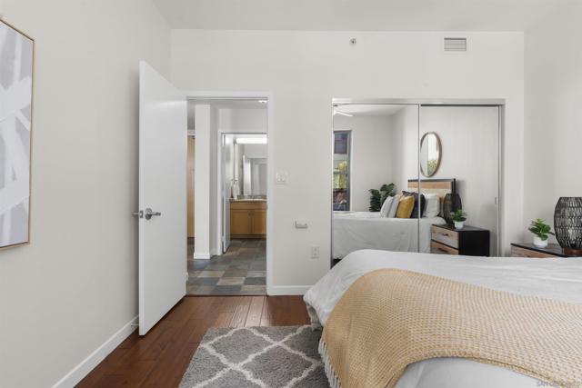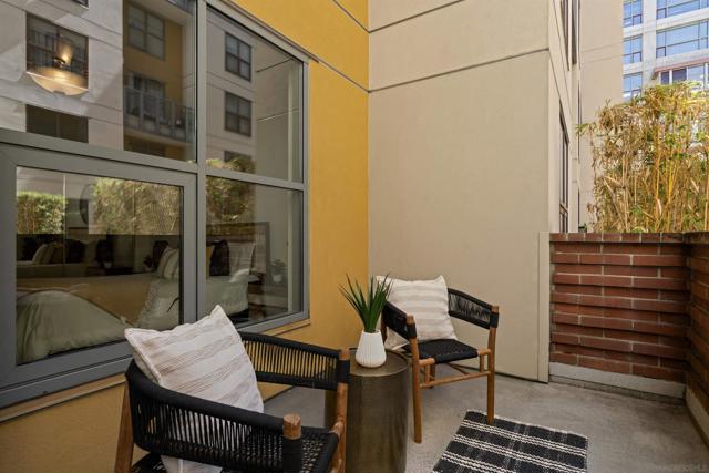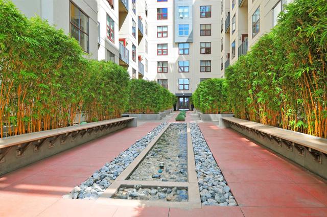 Charming Metrome residence with tranquil Zen Courtyard views and a spacious private patio. This one-bedroom home showcases engineered hardwood floors, fresh paint, ceiling fans in the living area and bedroom, plus a granite and stainless-steel kitchen with easy-to-maintain stone flooring. Perfectly located in Ballpark District, enjoy walkability to the Central Library, Petco Park, San Diego Bay, Gaslamp Quarter, and more. Community amenities include a fitness center, lounge, onsite security, and a serene courtyard with seating. Metrome in Ballpark District offers a prime Downtown San Diego location—steps from Petco Park, San Diego Bay, Gaslamp District, the Central Library, shops, and restaurants. Residents enjoy a Zen courtyard, fitness center, landscaped outdoor area with water feature, bike storage, secure entry, and a common lounge with kitchen. Experience the perfect blend of style, convenience, and community at Metrome!