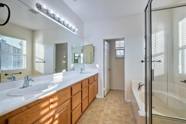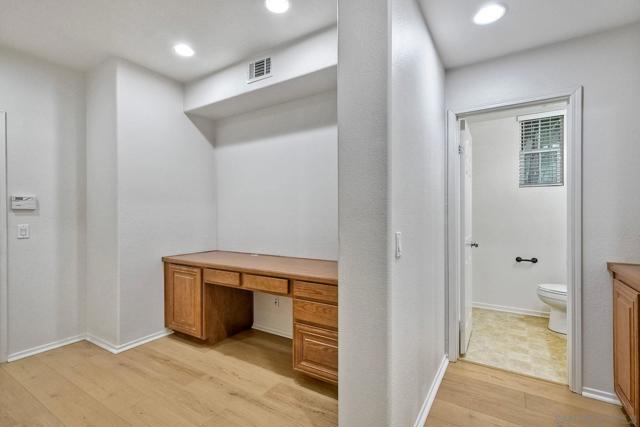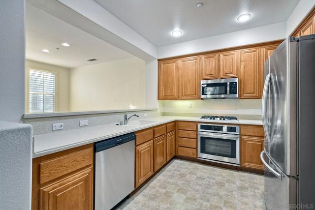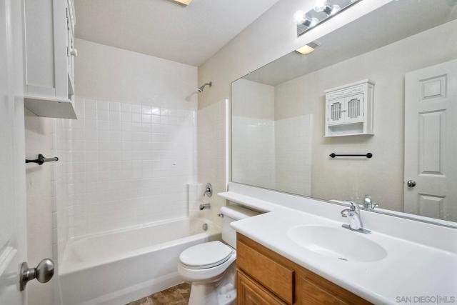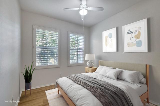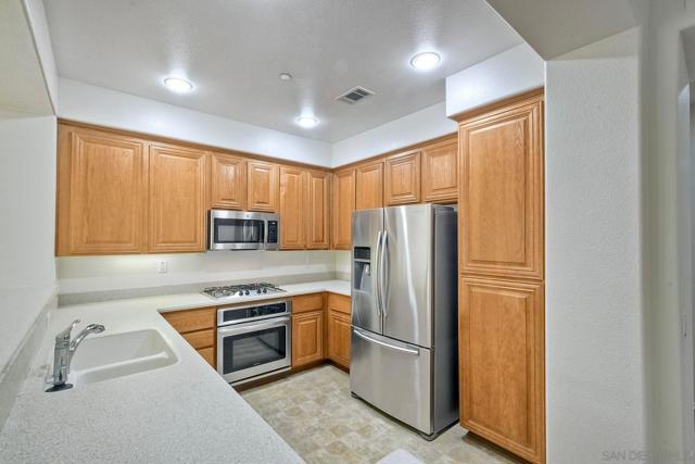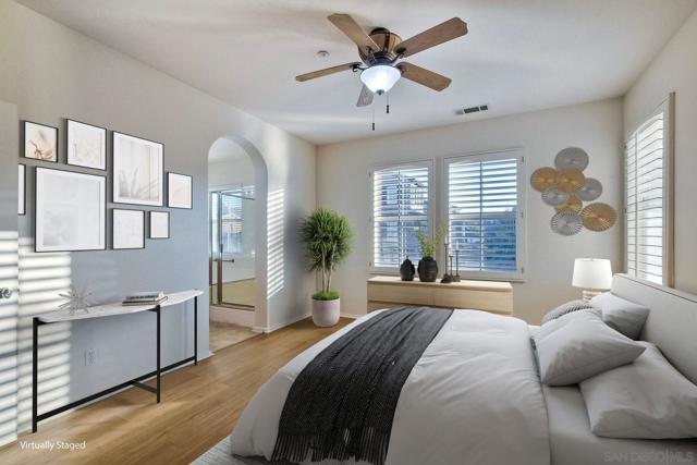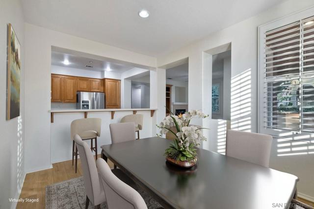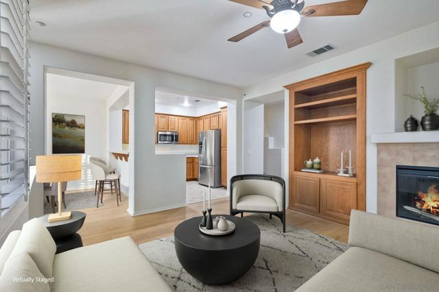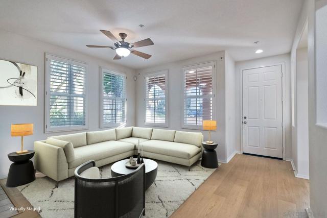 AVAILABLE FOR MOVE IN NOW!! This remodeled home is a rare find in the Cortina complex of Torrey Highlands. The townhome features 3 bedrooms and 2.5 bathrooms with brand new luxury vinyl flooring, carpeting and freshly painted throughout. The living room has tasteful wooden shutters, a cozy fireplace and a ceiling fan. The open floorplan includes a dining room, eating space at the kitchen counter, a half bath downstairs with a pedestal sink, a laundry room and even a spacious office area. Upstairs is the primary bedroom with a private bathroom which includes a glass enclosed shower and separate soaking tub. Great pride of ownership is apparent in this immaculate home. The front Patio/Porch area offers serene views of the complex and plenty of space to enjoy with family and friends. Community amenities include a pool and spa as well as a recreation area. The home includes a living room pre-wired for surround sound, a security system and a two car garage.