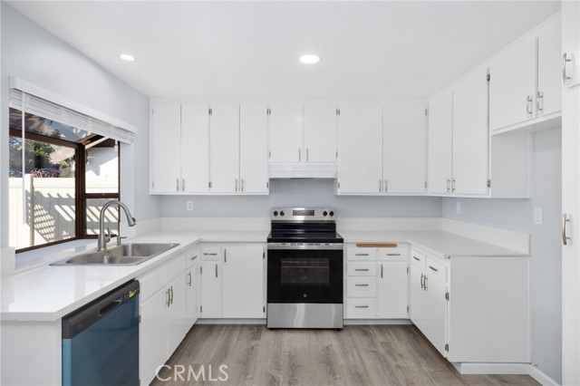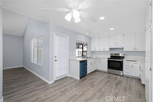 Welcome to this beautifully updated 2-bedroom, 2-bathroom condo offering 1,080 sq ft of stylish living in a highly desirable location. Step inside to discover a grand eat-in kitchen with stunning cabinetry, all-new stainless-steel appliances, and canned lighting—perfect for entertaining or everyday comfort. The spacious layout features vaulted ceiling, vinyl flooring throughout, indoor laundry, and a freshly painted interior that feels bright and inviting. Enjoy outdoor relaxation on your private back patio or take advantage of the rare 2-car enclosed garage plus guest parking. Modern features have been added including a brand-new HVAC system, dual pane windows, and modern blinds for added comfort and privacy. Conveniently located near top shops, restaurants, and major highways, this turnkey home blends comfort, style, and accessibility. A must-see gem!