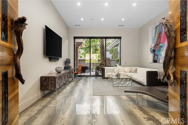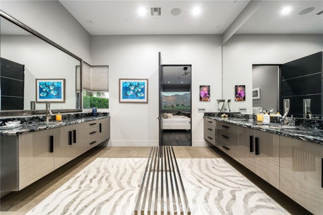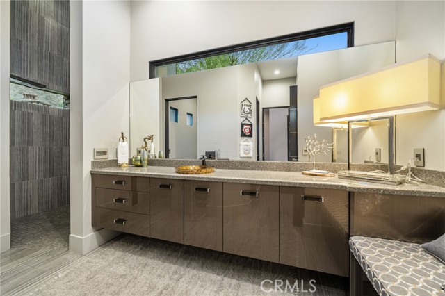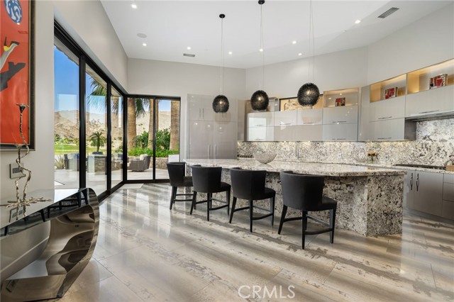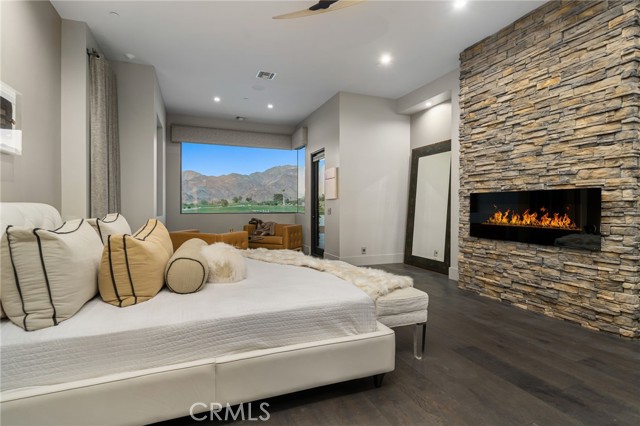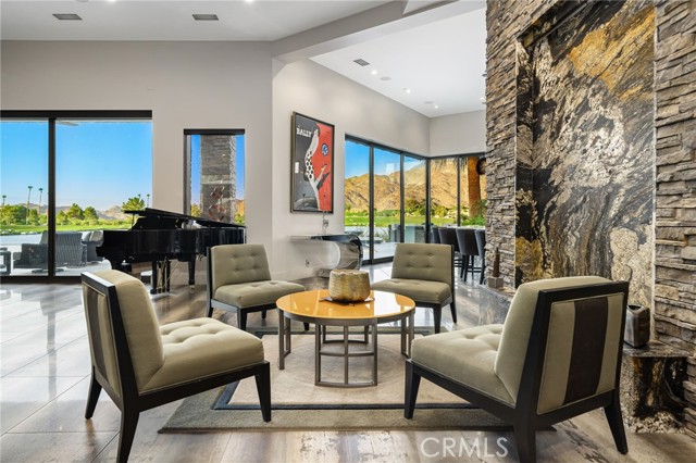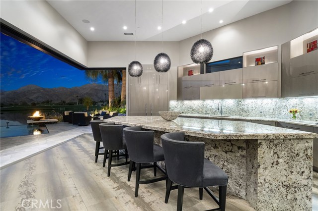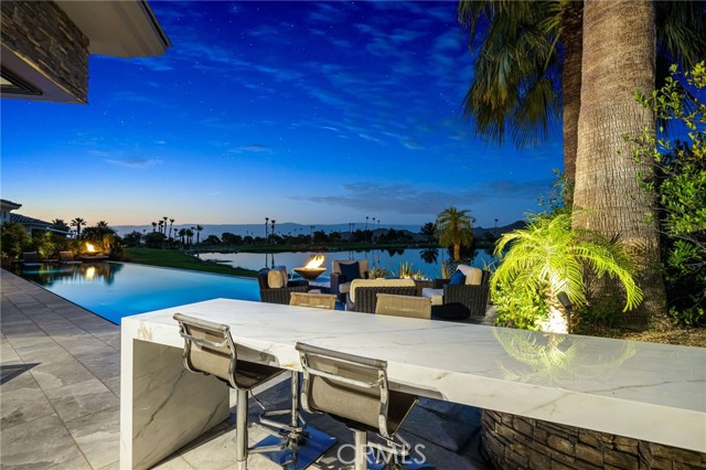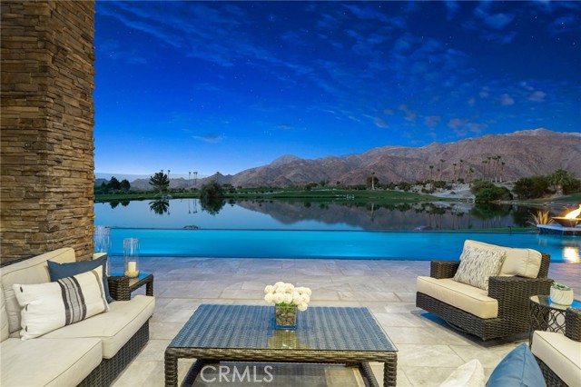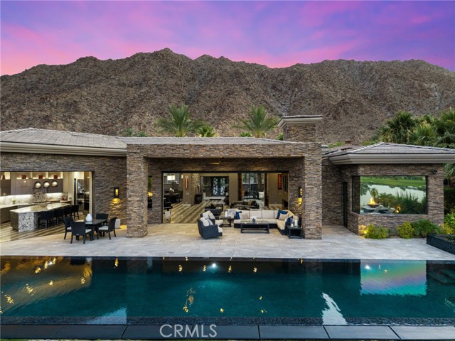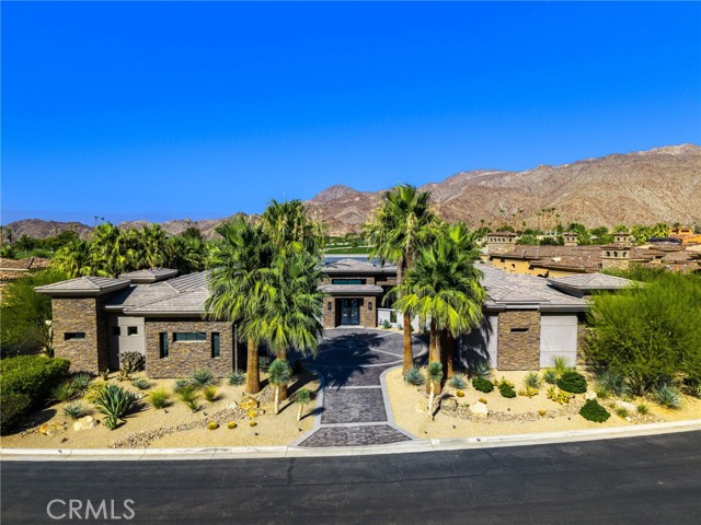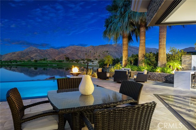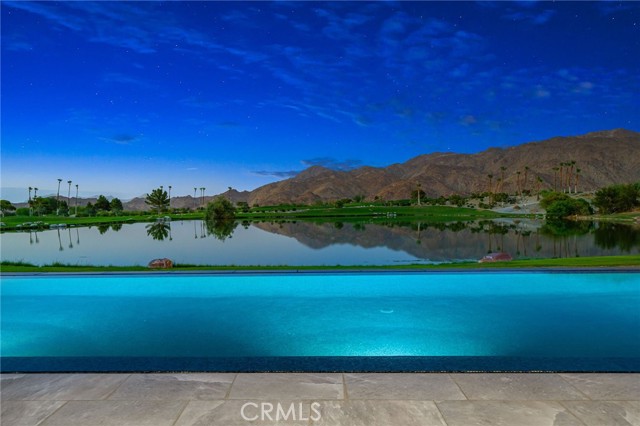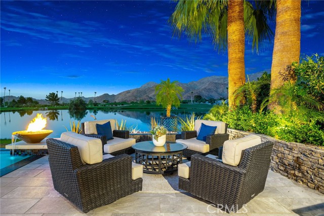 Perched at one of the most exclusive vantage points in Ironwood Country Club, this residence captures the true essence of desert serenity. Walls of glass frame uninterrupted vistas across a reflecting lake, the rolling fairways of the two championship courses and to the rugged ridgelines of the Santa Rosa and Chocolate Mountains. At night, tranquility reigns with star filled skies, the radiant hush of the desert, and glowing panoramas that create a natural masterpiece. The home spans 6,265 square feet across a private 19,600-square foot lot, designed with a modern, organic, desert centric architecture that blends seamlessly with its natural surroundings. An elegant motor court, framed by palms, water features, and desert landscape welcomes you home. Inside, refined living spaces and walls of glass with 14 foot ceilings open to breathtaking views at every turn. A modern, entertaining kitchen with seating for many, a butler’s pantry with coffee bar, a mountain view dining room, a 1,500-bottle wine room, a private viewing room with huge pivot doors, and a gym, all elevate your everyday living. Each of the four ensuite bedrooms offers its own retreat, including a luxurious private casita with a spa-inspired bath with waterfall shower. The primary suite enjoys exceptional views, two walk-in closets, fireplace, sitting area, and direct access to the pool and spa—perfect for savoring desert nights in solitude. Ironwood Country Club is a private, member-owned community cradled by the Santa Rosa and San Jacinto Mountains National Monuments. Just moments from El Paseo yet worlds away in ambiance, this rare offering combines natural beauty, ultimate privacy, and a lifestyle defined by peace, exclusivity, and awe-inspiring desert landscapes.