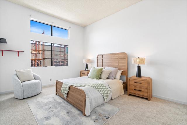 Welcome to this beautifully updated top floor (no one above), 2-bedroom, 2-bathroom home, where modern elegance meets unparalleled convenience. Step into a bright, open floor plan with vaulted ceilings and sleek new flooring, designed for effortless living. The spacious kitchen dazzles with tiled countertops, freshly painted cabinetry, new fixtures, durable tile flooring, and a full suite of appliances (in unit laundry). An open breakfast bar seamlessly connects to the airy living area, where sliding glass doors lead to a private balcony with stunning rooftop views of the neighborhood—perfect for indoor-outdoor entertaining or unwinding in style. The primary suite is a serene retreat, boasting floor-to-ceiling windows, plush new carpeting, a generous dressing area with mirrored closet doors, a large vanity, and a private water closet with fresh tilework. The well-appointed guest bedroom, also featuring new carpeting, pairs with a stylish hall bathroom complete with new fixtures and tile flooring, ensuring comfort and sophistication throughout. Stay comfortable year-round with a newer central HVAC system (2023) and enjoy peace of mind in a secure, gated building with one deeded parking space in a covered garage, plus additional parking through the HOA. Convenient balcony storage keeps your space clutter-free. Ideally located just minutes from SDSU, major freeways, shopping, and cultural hotspots, and only 20 minutes from the airport, beaches, or recreational destinations, this home delivers the best of urban living. Schedule your private showing today to experience modern comfort in a prime location!