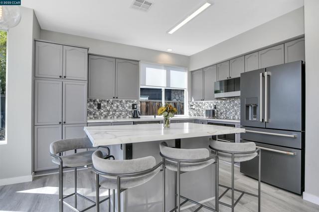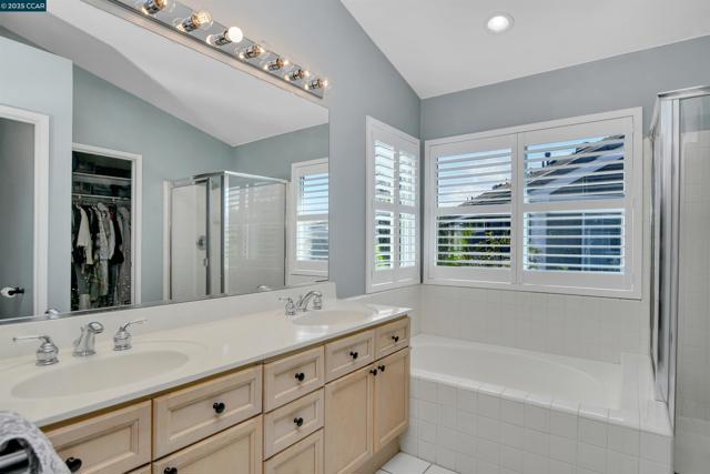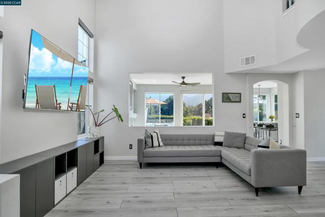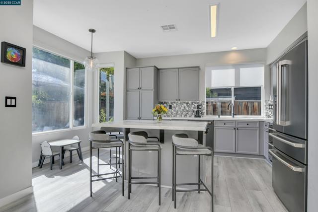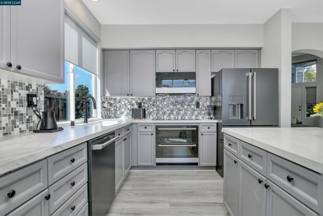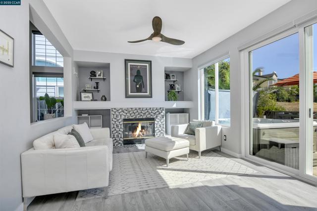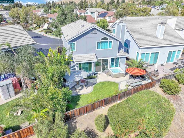 Welcome to this stunning 4-bedroom, 2.5-bathroom home in the heart of Oakhurst on the 14th fairway! Enjoy breathtaking views and a beautifully landscaped, low-maintenance backyard featuring pavers, a lush lawn area, and a relaxing spa. The modern kitchen is a chef's dream, boasting a stylish island for dining, a double oven, a 5-burner induction cooktop, a built-in microwave, and automatic window shades. The formal living room impresses with its soaring ceilings, while the cozy family room with a fireplace is perfect for gatherings. The elegant dining room is enhanced with a tray ceiling and designer light fixtures. Retreat to the spacious primary suite, complete with a walk-in closet, dual sink vanity, a separate shower, and a soaking tub. The home has upgraded smooth wall texture, an indoor laundry room, loads of storage, and an amazing location. Just around the corner, you'll find the community pool, and you'll be within walking distance to the town, parks, schools, restaurants, and trails. This home perfectly blends style, convenience, and comfort. Don't miss the opportunity to make it yours!