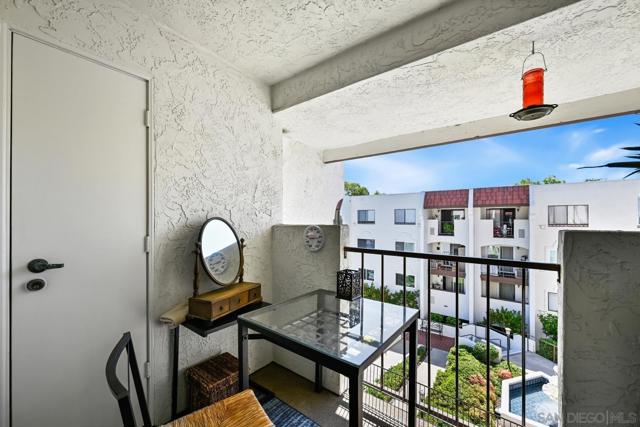 Charming TOP FLOOR 1-Bedroom Condo in the 62+ Regency Villas Community – Ideal Senior Living! This beautifully maintained residence offers comfort, convenience, and a welcoming sense of community in one of UTC’s most desirable 62+ developments. Features include a full kitchen with ample cabinet and counter space, a walk-in shower, upgraded sliding door to the private patio, and a mini-split HVAC system for efficient year-round comfort. The patio overlooks the community’s landscaped courtyard with a tranquil fountain—perfect for enjoying morning coffee or evening breezes. Additional highlights include gated underground parking, outdoor guest parking, air conditioning, and plenty of storage. Regency Villas provides new washers and dryers on every floor, along with a vibrant clubhouse offering regular activities, events, and social gatherings. Ideally located near shopping, dining, recreational paths, and with easy freeway access to the 52, 805, and 5. Experience stress-free living in a well-managed, friendly community where it’s easy to feel right at home!
