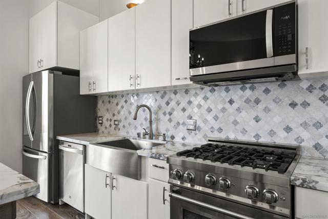 Beautifully remodeled, light-filled condo on Park Boulevard! This stylish two-story unit features a brand-new designer kitchen with a movable island, stainless steel appliances, and elegant marble countertops. It offers two spacious bedrooms, two bathrooms, in-unit laundry, and convenient storage under the staircase, all on the first level. Upstairs, the open-concept kitchen, dining, and living area flow seamlessly onto a generous 300-square-foot terrace—perfect for entertaining or relaxing. The condo also includes 2 tandem parking spots as well as a nice-sized storage unit in the parking garage. Whether you're a passionate cook or a plant lover, or just a lover being walking distance to everything, this home invites you to make the most of indoor-outdoor living. The condo is located on Park Blvd. Only a short walk to the San Diego Zoo, Balboa Park, the Tennis Courts, and much more. The condominium building is on the border of Northpark and Hillcrest.