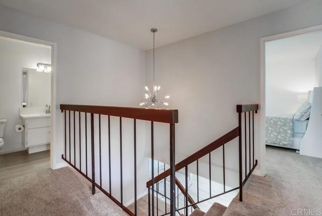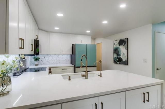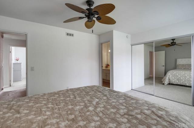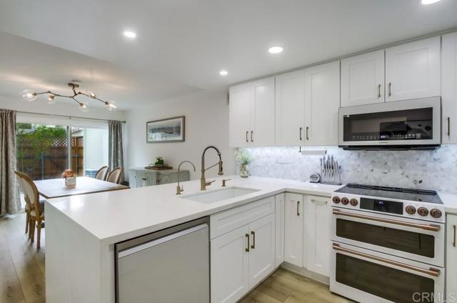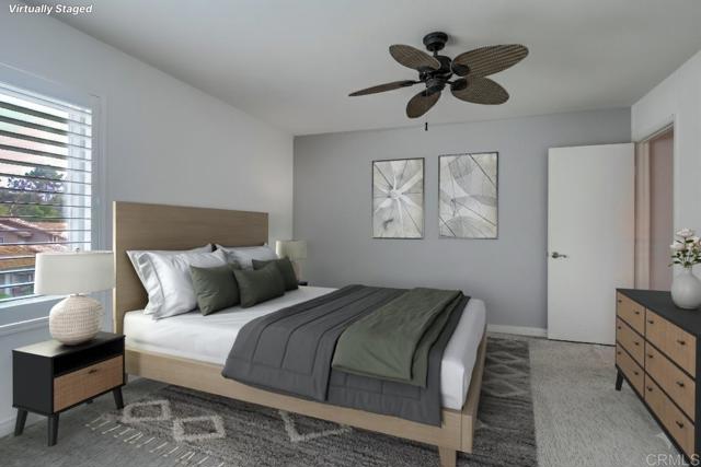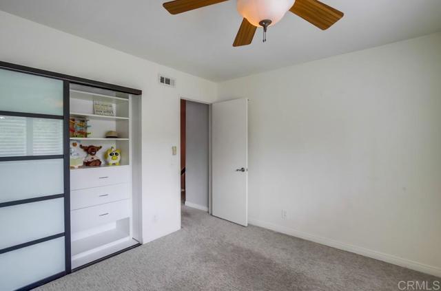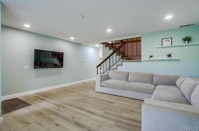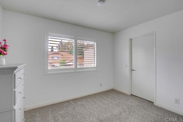 Welcome to this beautifully updated 3-bedroom, 2-bathroom townhome in the highly sought-after Villa Monterey community of Tierrasanta. This turnkey home offers the perfect blend of style, comfort, and convenience. The chef-inspired kitchen features top-of-the-line Samsung Bespoke appliances, a custom pantry, waterfall quartz countertops, and a marble backsplash — ideal for both entertaining and everyday living. Interior upgrades include fresh paint, recessed lighting, modern flooring on the main level, and carpet upstairs. All windows are outfitted with custom plantation shutters, and each bedroom features custom closets with built-ins and updated doors. The attached garage includes a washer/dryer, wet sink, and added cabinetry for extra storage. The home also comes equipped with 20 fully owned solar panels and a Level 2 EV charger. Tucked in a quiet location, the front entrance opens to a lush, HOA-maintained greenbelt, offering added privacy and a peaceful setting. You're just minutes from top-rated schools, parks, shopping, and major freeways — and Villa Monterey also offers on-site RV parking. A true must-see!