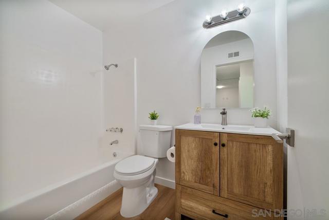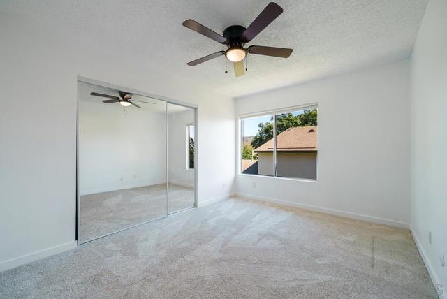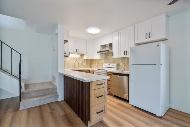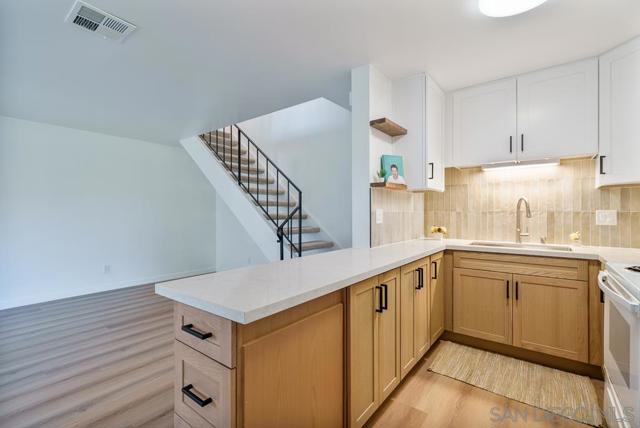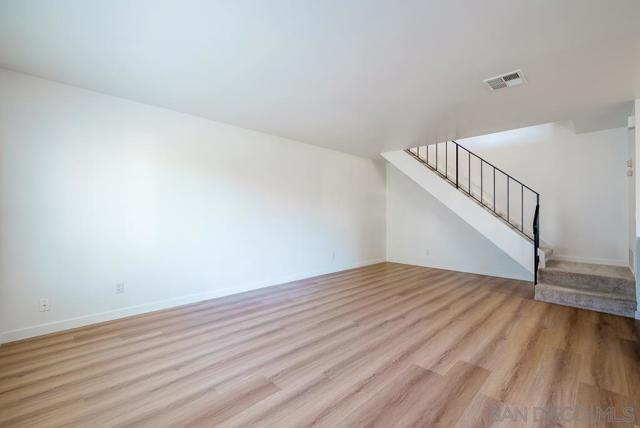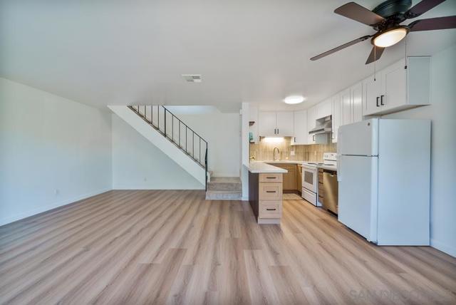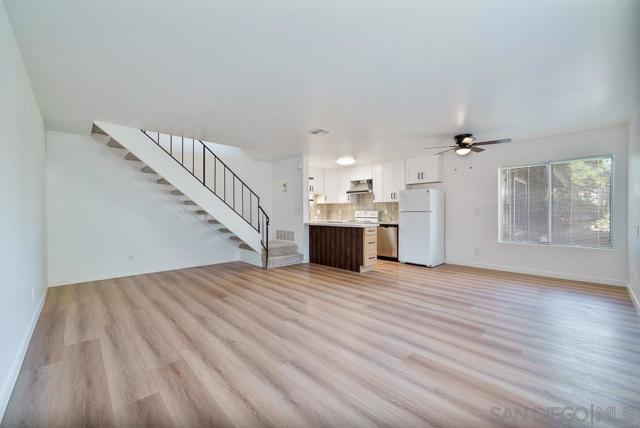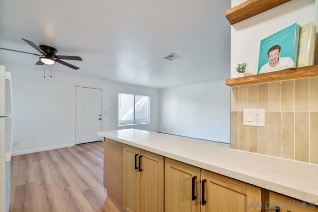 This two-story corner unit townhome has been fully updated with modern finishes in the desirable Penasquitos Villas complex. Versatile floor plan with entry, great room and kitchen located on first floor and 2 full bedrooms and bathroom located on second floor. ALL NEW: LVP flooring downstairs, shaker style cabinets in the kitchen with modern black pulls, designer backsplash, stainless steel farmhouse sink, quartz countertops, dishwasher and updated hood vent, and cabinet space for a standalone microwave, and designer walnut toe-kick island. The great room offers a modern matte black ceiling fan with a light and two windows that add an abundance of natural light. The upstairs bathroom renovation features a modern shape basin vanity, updated lights, new mirror, and new flooring. Parking includes one designated spot within a shared two car garage and one tandem spot in the driveway. The shared garage also provides additional tenant storage within assigned closet space and laundry facilities that are available for a nominal fee and shared among tenants. Outdoor complex amenities include three pools. This home is conveniently located within walking distance to popular Poway Unified Schools and is close to shopping, freeways, bus lines, dining, entertainment and parks.