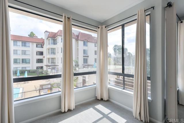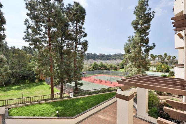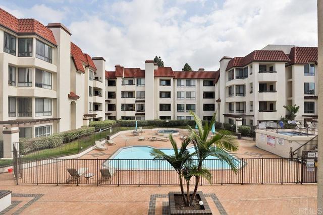 Welcome to this bright, light, cozy & spacious 2BR/2BA corner unit on the 2nd-floor in one of San Diego’s most sought-after gated communities. "The Courtyards" offers true resort-style living with 24-hour guard security, sparkling pools, relaxing spas, tennis courts, saunas, a fitness center, & scenic walking paths through lush, landscaped grounds. Enjoy peaceful views of the pond, dog park, tennis courts, trolley, & central courtyard right from your private covered balcony—perfect for relaxing mornings or entertaining evenings. Inside, the open-concept living area features a cozy gas fireplace, central heat & A/C, & in-unit washer/dryer. The kitchen offers abundant cabinet space and flows seamlessly into the dining and living areas. The primary suite is a serene retreat with a walk-in closet & updated ensuite bath. The versatile second bedroom is ideal as a guest room or home office. This home also includes 2 underground parking spaces, a rare convenience in this community. All of this is just minutes from Fashion Valley Mall, USD, Mission Bay, SeaWorld, San Diego’s beaches, & the airport—offering the perfect combination of comfort, convenience, & luxury living.