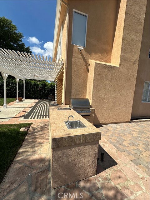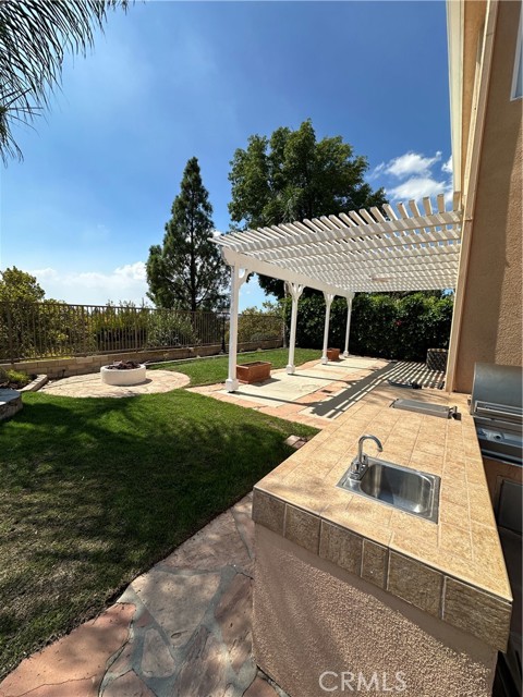 Welcome to the prestigious gated community of Porter Ranch Highlands! This spacious and beautifully maintained 5-bedroom, 3-bathroom residence offers the perfect blend of luxury, comfort, and privacy. The main level features a versatile bedroom with a full bathroom, ideal for guests or a home office. Upon entry, you’ll be greeted by soaring ceilings, abundant natural light, and a functional floor plan that includes a formal living room, dining room, and a cozy family room with fireplace. The kitchen boasts crisp white cabinetry, stainless steel oven, microwave, dishwasher, and a gas cooktop—perfect for everyday living and entertaining. Upstairs, you’ll find four additional bedrooms, including the expansive primary suite showcasing amazing city and mountain views. The suite includes a walk-in closet and a spa-like ensuite bathroom with dual vanities, soaking tub, and separate shower. Step outside to a wonderfull backyard retreat featuring mountain views, a gas fire pit, built-in BBQ island, stone waterfall, and a pergola-covered patio—perfect for entertaining or relaxing with family and friends. This home sits on a quiet cul-de-sac corner lot with an attached two-car garage. Community amenities include a 24/7 guarded gate, pool, spa, tennis courts, and BBQ area. Conveniently located near top-rated Castlebay Lane Elementary, Sierra Canyon School, The Vineyards shopping center, Whole Foods, and with easy freeway access.