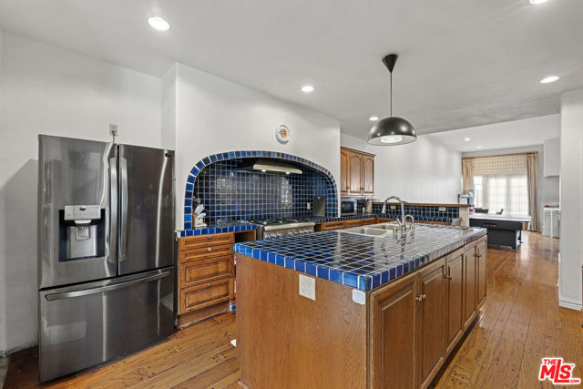 An exceptional property, offering stunning views, ample space, and timeless elegance situated in The Crown, a virtually gated community in the Mountaingate HOA. Showcasing breathtaking panoramic vistas of serene golf course fairways, picturesque mountain ranges, and the twinkling lights of downtown Los Angeles this home spans an impressive 4,550 square feet. This spacious 4-bedroom, 4.5-bathroom residence boasts soaring 10-foot ceilings, exquisite oak hardwood floors, a wet bar, generous crown moldings, and three decorative fireplaces. The grand living, dining, and family rooms harmoniously flow together, offering a seamless first-floor layout. At the heart of the home lies a large chef's kitchen with an adjacent dining area. Each of the four ensuite bedrooms includes a remarkable primary suite that features sweeping views, a luxurious private bathroom, and a spacious walk-in closet. The serene backyard, adorned with fruit trees and ample patio space, is perfect for entertaining. This property is a true gem waiting for your personal touch; its overall atmosphere is divine and spacious. Enjoy resort-style amenities such as a community pool, spa, and private tennis courts. HOA fees cover exterior fire and earthquake insurance, roof maintenance, exterior painting, trash service, 24-hour security patrols, and enhanced virtual gate monitoring. Mountaingate in Brentwood is renowned for its stunning hiking trails and park-like setting. Optional memberships to the Mountaingate Country Club provide access to golf, tennis, and various social activities. Conveniently located near some of the Westside's finest shopping and dining, the Getty Museum, with easy access to the 405 freeway, UCLA, and USC.
