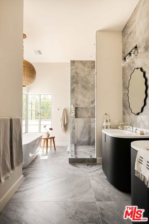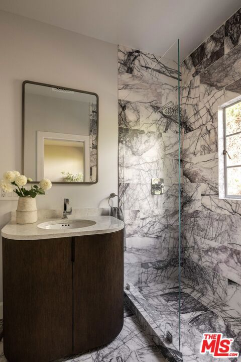 On a rare street-to-street lot north of the Boulevard, this newly reimagined residence offers the best of Los Feliz livinggated, private, and just moments from Hillhurst and Vermont. Past a welcoming front yard and patio, the entry opens into a soaring living room, where high ceilings, a fireplace, and original steel windows set the tone for timeless character blended with thoughtful updates. Graceful archways lead into a formal dining room and expansive open kitchen, complete with a generous eat-in island, breakfast nook, and tall steel French doors that connect seamlessly to a sunlit courtyard. The main level also features two en-suite bedrooms, a powder room, and a laundry room, all designed with livability in mind. Upstairs, the primary suite is a true retreat: light-filled with lofty ceilings, a walk-in closet, and a spa-like bath with dual vanities, a shower, and an artfully placed soaking tub. A flexible additional bedroom completes the upper level. Outside, the lot unfolds with opportunities for entertaining, gardening, and relaxation, with multiple gathering areas and room to expand. At the end of a long private driveway, a detached garage adds both convenience and privacy. Blending architectural charm with modern amenities, this gated mini compound lives with ease, offering both privacy and proximity in the heart of Los Feliz.