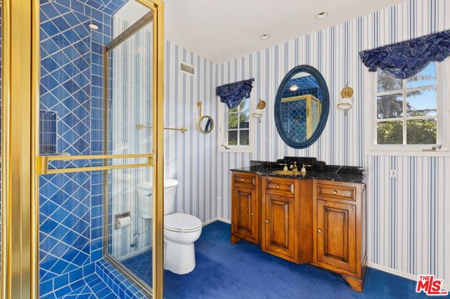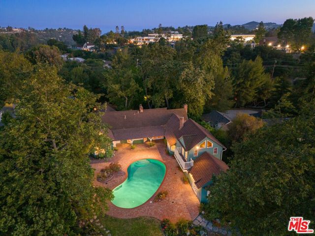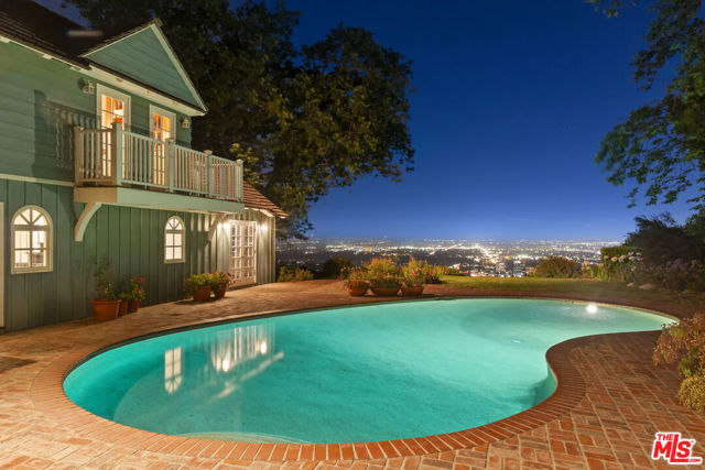 Rare 180-degree jetliner views from this home tucked away on an exclusive private street off of iconic Mulholland Blvd that is shared with only five other homes. This exceptional property presents a rare opportunity for homeowners or developers to reimagine a timeless residence in one of Los Angeles' most coveted and view locations. This ultra-private Bel Air estate boasts sweeping views of the San Fernando Valley and is set on a generous 21,644+- sq ft lot. The 4-bedroom, 4-bathroom traditional home is approximately 3360+- sq ft. and originally built in 1950 with a 1993 addition of a main bedroom and a 4th bedroom. The home is filled with classic charm and centers around a serene swimming pool, offering California indoor-outdoor living mostly single-level living with the 4th bedroom/office with viewing balcony situated upstairs. Ideally located just East of the 405 Freeway at Roscomare Drive minutes from top-tier public and private schools, the Glen Centre's upscale shops and dining this property offers convenience, privacy, and endless potential. Trust sale.