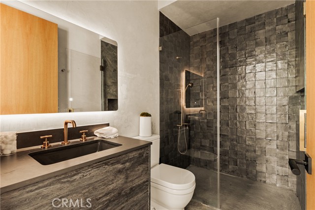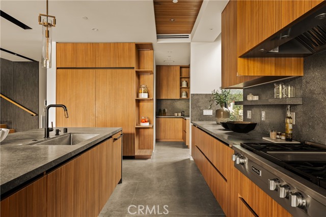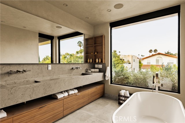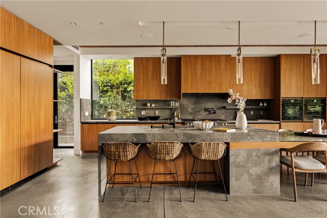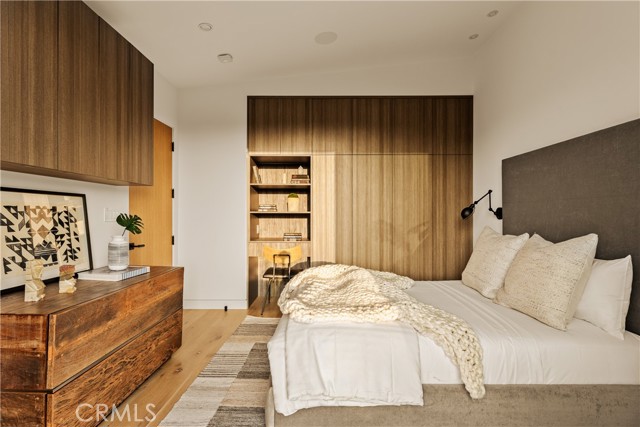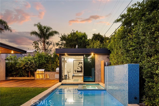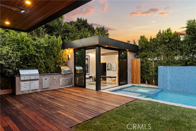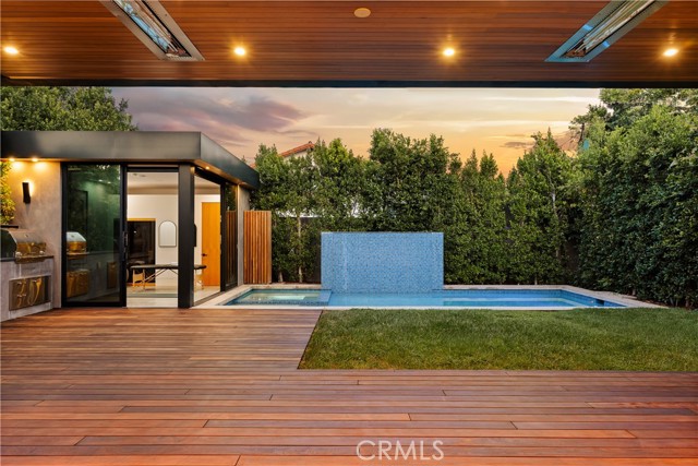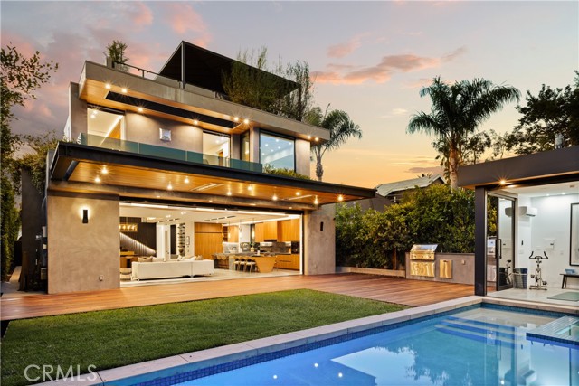 Modern luxury and architectural brilliance await at 540 N Gardner. a 2020-built architectural masterpiece in the highly sought-after Melrose Park neighborhood. This 5-bedroom, 5.5-bathroom smart home seamlessly blends sleek design with exceptional functionality across 3,864 square feet of curated space. Every detail is elevated: Fleetwood automatic pocket doors, radiant-heated concrete flooring downstairs, engineered wood upstairs, and heated floors in every bathroom. The gourmet kitchen impresses with floor-to-ceiling European cabinetry, quartz countertops, and a full suite of top-tier Miele appliances—including in-wall ovens, a steam oven, dishwasher, coffee system, and dual 36” panel-ready fridge/freezer. Indoor-outdoor living is effortless with a heated covered patio, saltwater pool and spa, outdoor shower, and pool house featuring a 2-person sauna. Entertain from the rooftop deck with built-in BBQ and city views. A full Lutron automation system, Sonos sound, solar panels, whole-house water and IQ-Air HEPA filtration elevate both lifestyle and wellness. Just steps from premier Melrose dining, shops, and nightlife.