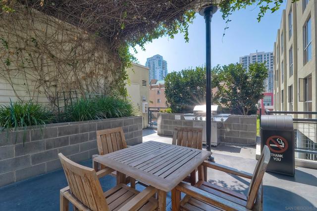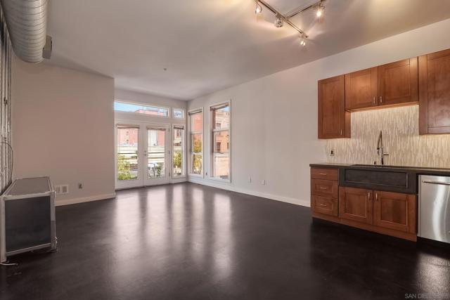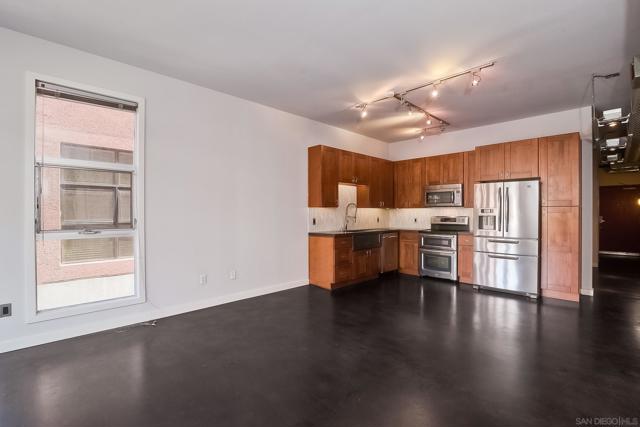 777 Lofts is a centrally located, contemporary building in between East Village and the Gaslamp District. Unit 209 is a spacious 1br/1ba condo with an open floor plan and high ceilings.The unit faces west and gets plenty of sunlight and has a view of the city. The condo has polished concrete floors, stainless steel appliances and a Juliet balcony that overlooks 6th Ave.There is a separate bedroom from the living room with a large flatscreen TV, window and closet.