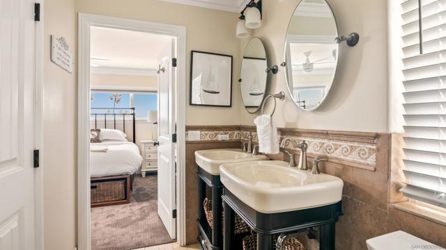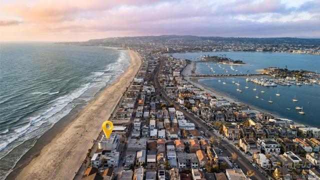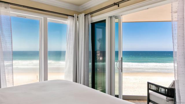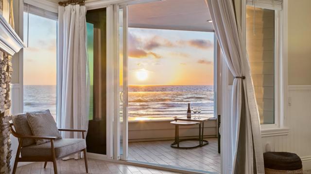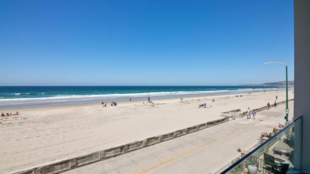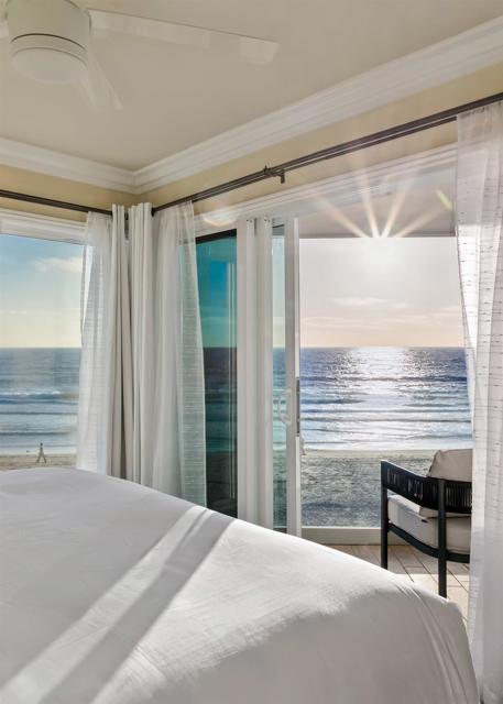 Welcome to your dream beach escape, a 2-bedroom, 2-bathroom oceanfront condo located directly on the Mission Beach boardwalk. This two-story residence offers unmatched views of the Pacific Ocean from nearly every room and provides direct access to the sand and surf just outside your door. Upstairs, the primary suite features a California king bed, wall-to-wall windows, and sliding glass doors that open to a private oceanfront balcony. The ensuite bathroom includes dual vanities, a walk-in glass shower with river rock flooring, and soothing coastal finishes. The second bedroom is equally comfortable, with a California king bed, smart TV, desk space, and an adjacent full bathroom with a combination tub/shower and dual sinks. The living area features a cozy fireplace and expansive windows that bring in natural light and fresh ocean air throughout the day. A TV is located in each room for added comfort and convenience. Please note, pets are not permitted in this home. The kitchen is complete with modern appliances, granite countertops, and a center island ideal for prepping meals. There is kitchen bar seating for four and a separate dining table. Additional amenities include in-unit washer and dryer, air conditioning, and a small designated parking space in front of the garage. Whether you’re here for work, rest, or play, every detail is designed to make your stay feel exceptional. Sleeping Accommodations (Maximum Occupancy 4): Bedroom 1 - 1 King bed Bedroom 2 - 1 King bed - There are a total of 2 bathrooms