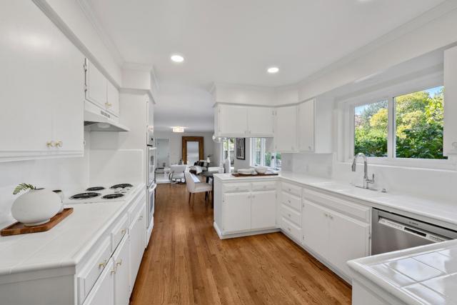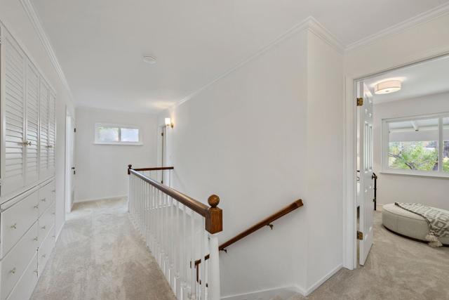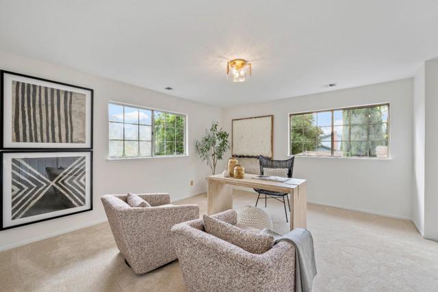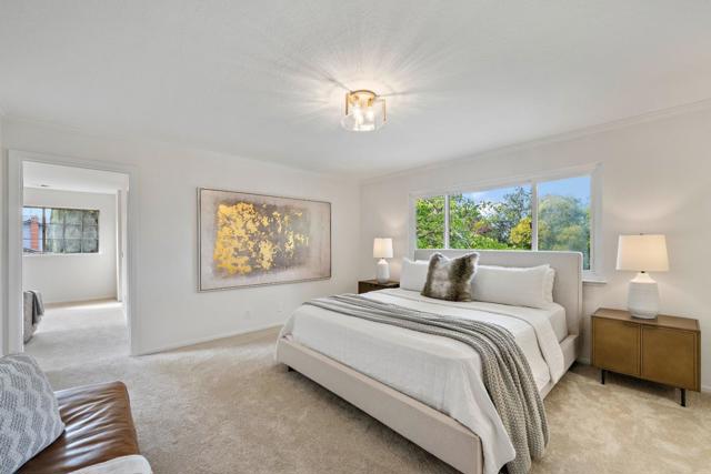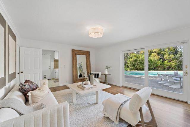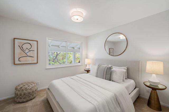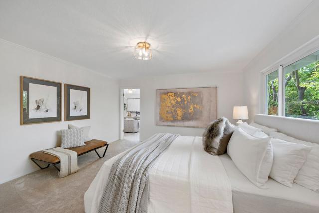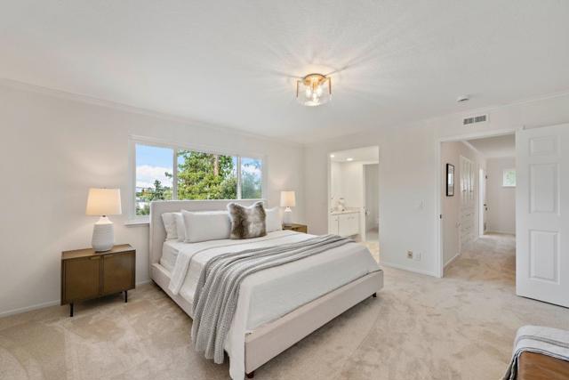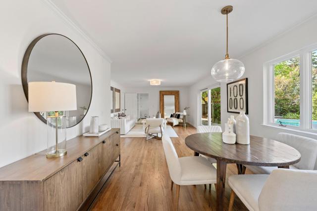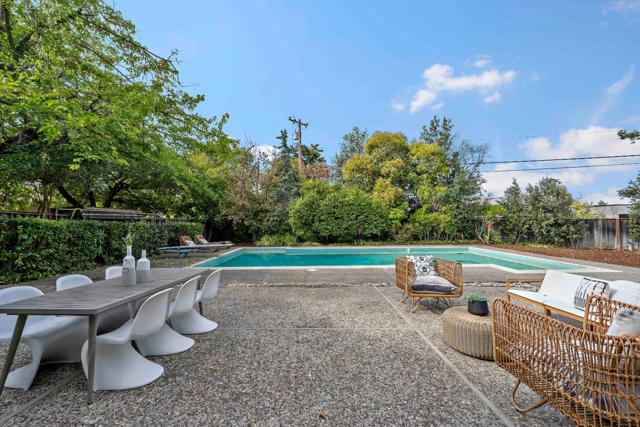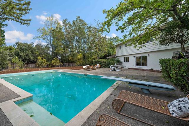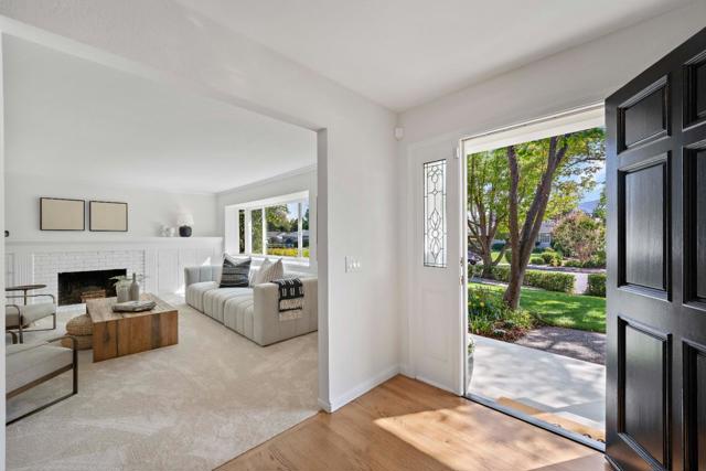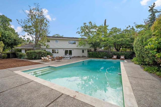 SPACIOUS CORNER HOME IN THE GOLDEN TRIANGLE | Just moments from idyllic Saratoga Village and outstanding schools, this home lends a fresh, welcoming presence to a large, prominent corner lot in the coveted Golden Triangle. Updated interiors merge classic design with everyday functionality, offering stylish paint and lighting selections, oversized picture windows, new carpet, and hardwood floors. Intended for entertaining, the living room shares a sizable layout with the dining room, while the refinished kitchen flows into family and breakfast spaces adjacent to the entertaining terrace. A ground-level suite is ideal for guests, while four more bedrooms are tucked upstairs including an expansive primary retreat with vast closet space and a separate sitting room/office. Outdoors awaits a private backyard haven with a sparkling pool and plenty of room for recreation. Quickly reach the weekly Farmers Market, popular shopping and dining, freeways to major tech centers, and much more!