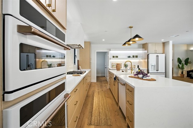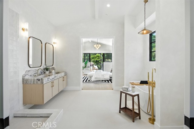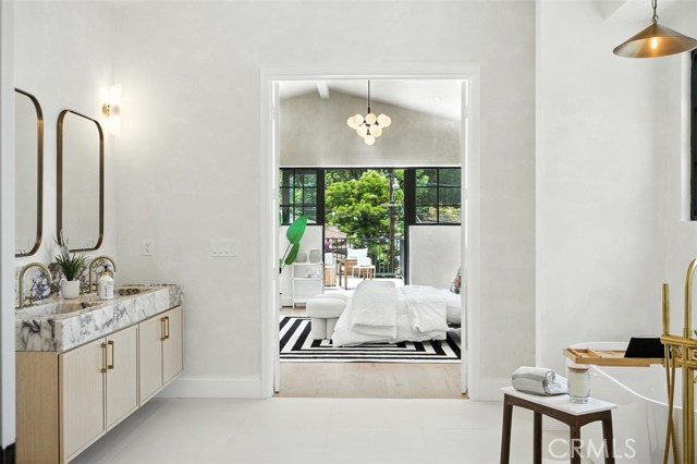 Refined Contemporary Living South of the Boulevard Tucked away on a generous 12,600+ sq ft lot south of Ventura Boulevard, this fully reimagined 4-bedroom, 4-bathroom residence offers nearly 2,900 sq ft of elevated design and everyday livability. Every inch of the home has been thoughtfully curated, with warm engineered wood floors, designer tilework, and modern finishes that create a sense of effortless sophistication throughout. The main level hosts three spacious bedrooms, each with access to a spa-like en suite bath. One opens directly onto a peaceful patio, while another—positioned at the front of the home—flows seamlessly to a charming covered porch, perfect for morning coffee or winding down at sunset. At the heart of the home, the chef’s kitchen makes a bold statement, featuring a premium Café appliance suite, a striking counter-to-ceiling tile backsplash, custom under-shelf lighting, and a dramatic eat-in island built for both gathering and function. A walk-in pantry and dedicated laundry room add convenience without compromising style. The open-concept living and dining areas are anchored by a cozy fireplace and floor-to-ceiling windows that usher in natural light and offer direct access to the backyard—creating an ideal space for indoor-outdoor entertaining. Upstairs, the primary suite feels like a boutique retreat, complete with vaulted ceilings, a private view balcony, a custom walk-in closet, and a spa-worthy en suite bath with dual floating vanities, a sculptural soaking tub, and a striking stone-clad shower. Outside, the backyard is both intimate and expansive, with multiple zones for lounging, dining, and entertaining. A private staircase leads to a hillside lookout perch where sweeping canyon views stretch for miles—offering a serene backdrop that feels worlds away, yet remains just moments from the Shops at Sportsmen’s Lodge, top-rated schools, and the best of Ventura Boulevard. This is Studio City living at its finest—where design, comfort, and location come together in perfect harmony.