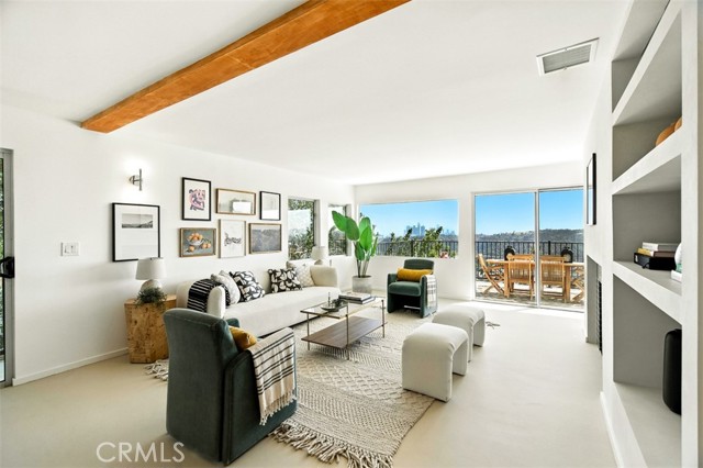 Architectural Mid-Century Compound with Panoramic DTLA Views Set high in the coveted hills of Mount Washington, this expansive 6-bedroom, 7-bathroom estate seamlessly fuses mid-century pedigree with elevated contemporary living. Originally designed by iconic architect Raphael Soriano, the 3,360 sq ft residence has been reimagined with sophisticated finishes that honor its architectural legacy while embracing the comforts of today. Walls of glass flood the main residence with natural light and offer uninterrupted views of Downtown Los Angeles from nearly every room. The entry level is anchored by polished ceramic concrete floors, an open-concept living and dining area, and a chef’s kitchen outfitted with sleek birch cabinetry and premium stainless steel appliances—designed for both style and functionality. Upstairs, four serene bedrooms offer peaceful retreats, including a luxurious primary suite with floor-to-ceiling closets, a private balcony, and a spa-inspired en suite wrapped in elegant tile. On the lower level, a fully self-contained suite with one bedroom, two bathrooms, a kitchenette, and its own living area opens directly to a wraparound view deck—ideal for guests, extended family, or creative workspaces. A detached three-car garage sits above a 600 sq ft bonus unit, complete with its own bedroom and flexible layout—perfect for a studio, rental income, or additional guest quarters. Designed for seamless indoor-outdoor living, the property includes multiple view balconies, sprawling decks, and a flat, terraced side yard—creating a dynamic setting for entertaining, lounging, and stargazing alike. This is more than just a home—it's a rare opportunity to own a revered piece of Los Angeles architecture, thoughtfully updated for the way we live now.