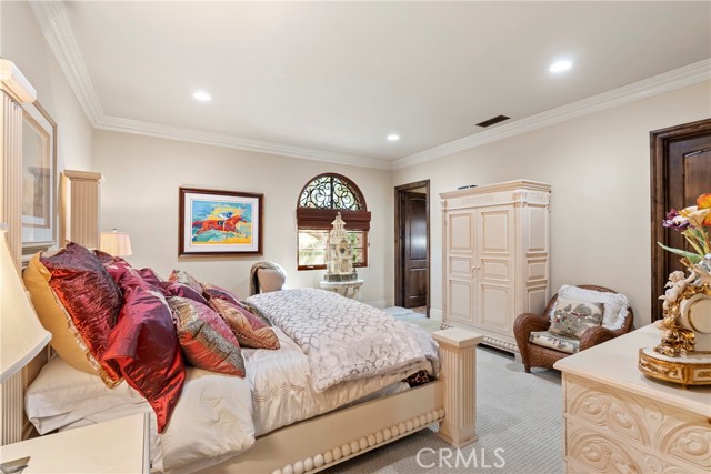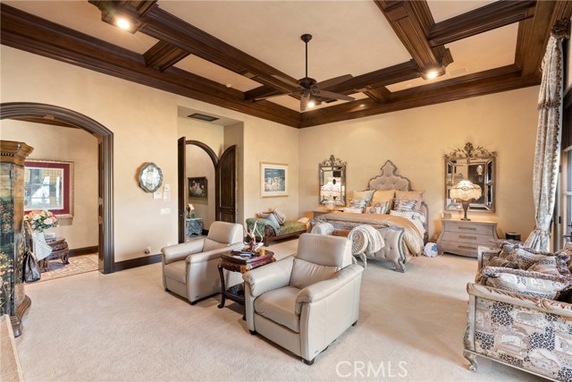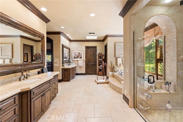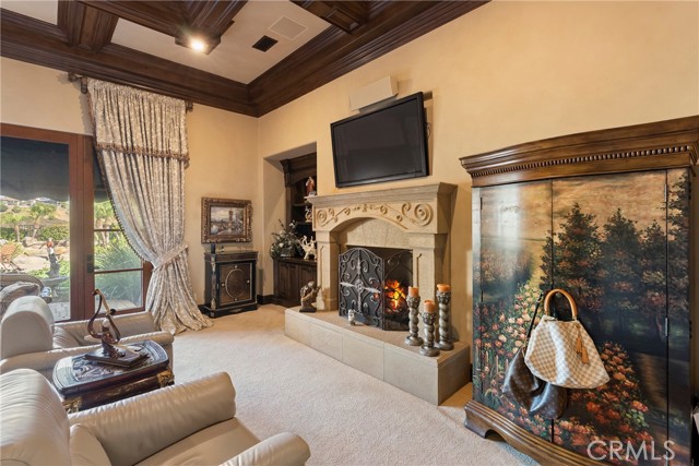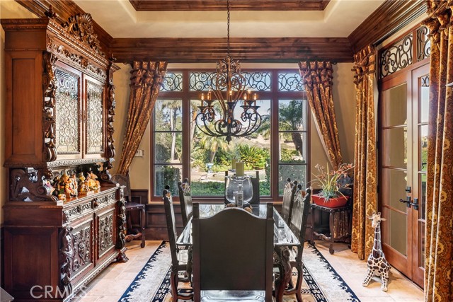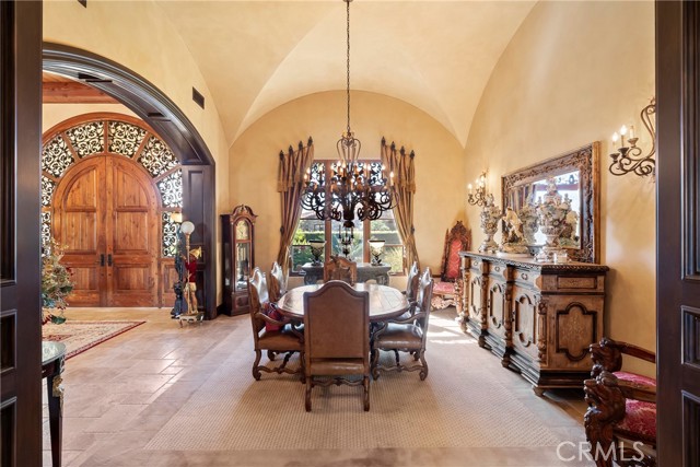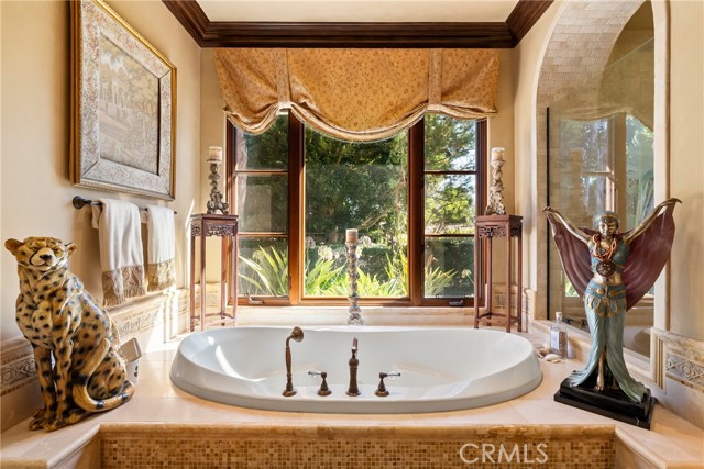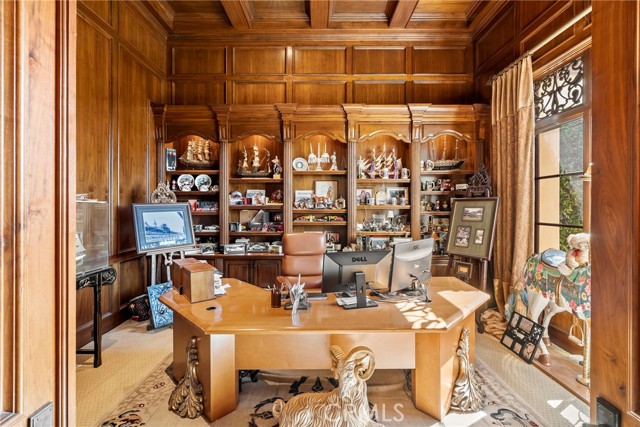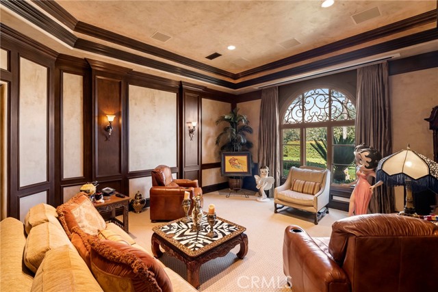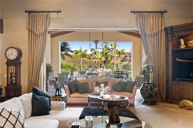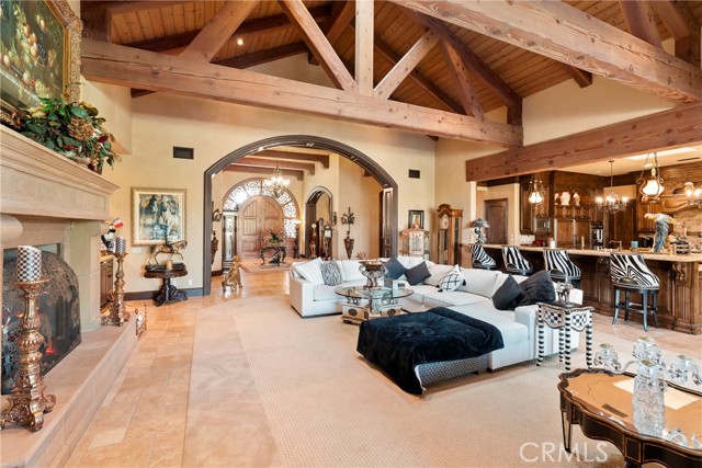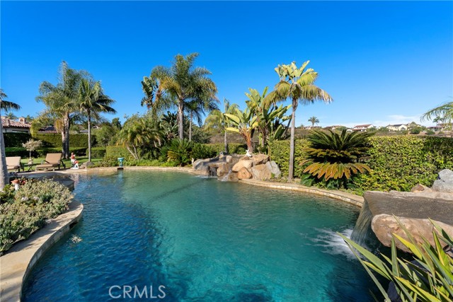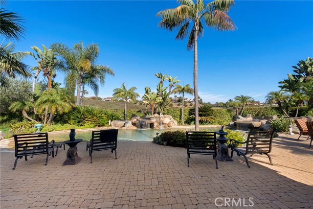Lease Option Available or $32,000 Monthly Yr Lease. Gorgeous single level home in beautiful Rancho Pacifica. This beautifully maintained one story home is absolutely stunning. From the moment that you step into this home you will feel as though you are entering into a gorgeous Villa. The entryway is inviting and ornate with handcrafted designed iron and an ornate arched doorway. There is over $350,000 in woodwork in this pristine home that boasts high vaulted ceilings with skylights and handcrafted beams. The woodwork is handcrafted in walnut and is gorgeous and robust and surrounds the home in an handcrafted, artisan ambience. As you enter into the home there is a spacious office that has custom walnut shelves. There is a welcoming formal dining room that has an ornate ceiling and iron chandelier. There is an expansive family room that has a grand fireplace and handcrafted shelves that are beaming with a high level of aesthetic harmony. The room has immense glass sliding doors that open up to an alluring patio that has a fireplace, sink and refrigerator. It boasts a fantastic view of the gorgeous, sparkling beach style pool and jacuzzi that has a pebbled bottom and two overflowing waterfalls. There is also a media room with a theatre screen that comes down when your family is ready for that special movie night. There is a palatial primary bedroom that has a gorgeous fireplace, surround sound, high ceilings and coffee bar that leads into an expansive bathroom with a shower, sunken tub, bidet, and two expansive closets. This room has a view of the pool area and is enhanced with built-in handcrafted shelves. Down the hall is another generous-sized room with an ensuite full bath and walk-in closet. There are two other spacious bedrooms with ensuite bathrooms and showers. The kitchen has a large dining nook and a beautifully immense granite island with a separate sink, eating area with barstools, and warming drawer. Additionally, there are two dishwashers, a 72" inch SubZero with custom wood doors, wine cellar closet, roomy walk-in pantry, Viking Double Oven, Viking six burner cooktop, and trash compactor. There is a lofty laundry room down the hall and two separate car garages, one with three parking areas and one with two. There is immense space to house your cars. There is too much to mention and this home is a one-of-a-kind. A rare find single story on an enormous lot in a 24/7 guard secured neighborhood with top-rated schools and premier neighborhood.