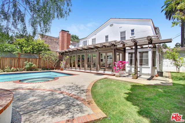 Wonderful opportunity to live North of Montana in Santa Monica's Franklin School District! Beautiful 2-story traditional home has 4 bedrooms, 2.5 baths, and nearly 2,600 sf of living space. There is also a detached studio in the back of the house with a full bath, adding another 350 sf. The large 9,375 sf lot easily accommodates a pool, lawn, yard, and a 2-car garage that backs onto the alley. Downstairs has a large family room, formal dining area, large kitchen with stainless steel appliances, separate breakfast nook, a bedroom, and a huge enclosed sunroom that opens to the backyard and pool. Upstairs are 3 large bedrooms, laundry room, and 2 full baths - perfect for a family! Primary bedroom has a unique sitting area with front facing windows, and large windows throughout the home overflow with natural light. The entire home has been refreshed while maintaining its architectural charm - it's the perfect location in Gillette Regent Square!