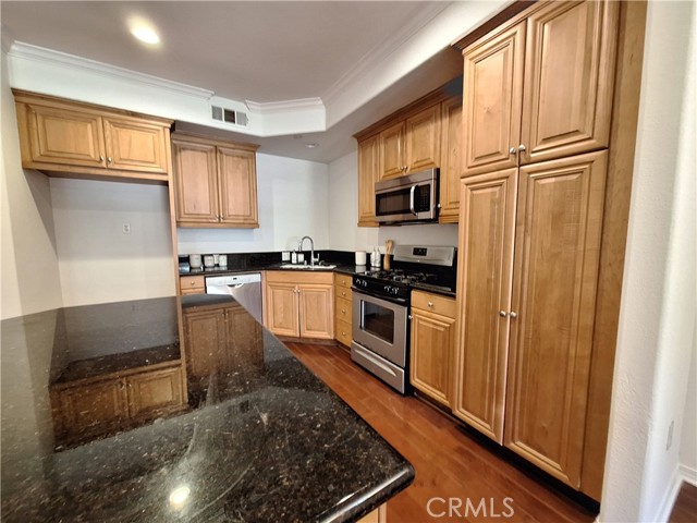 Experience luxury living in the gated Bay Harbor community with this bright and open 3-bed, 2-bath end unit condo featuring laminate floors throughout, a gourmet kitchen with granite countertops, stainless steel appliances, a cozy living room fireplace, a master suite with a walk-in closet, and a private balcony with direct access to BBQ units in the courtyard. Enjoy convenient access to shopping, dining, the 110 FWY, and two assigned tandem parking spaces in this secure, amenity-rich complex.