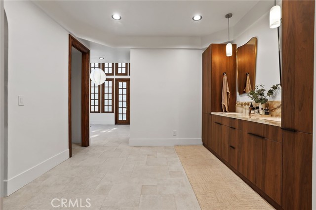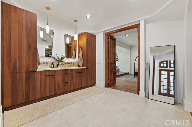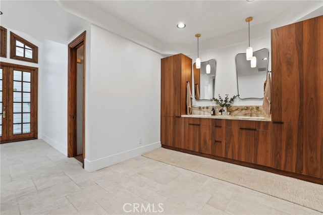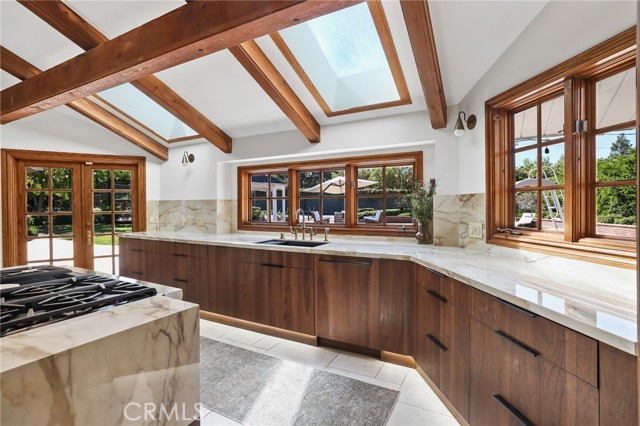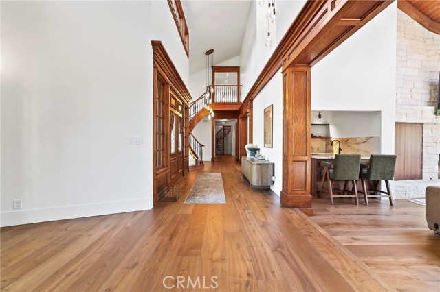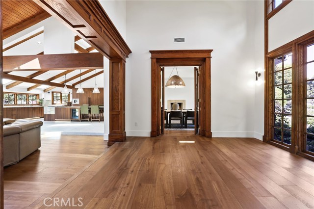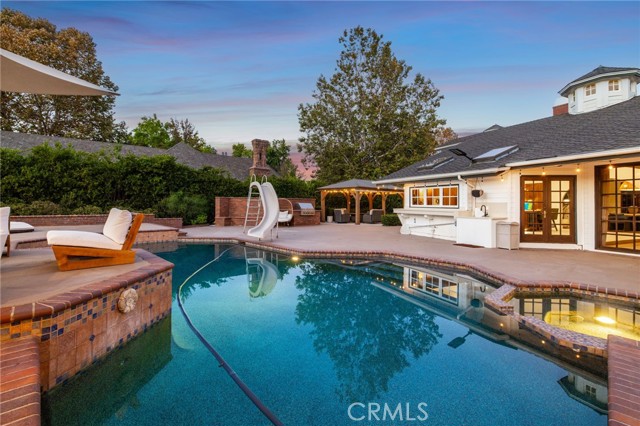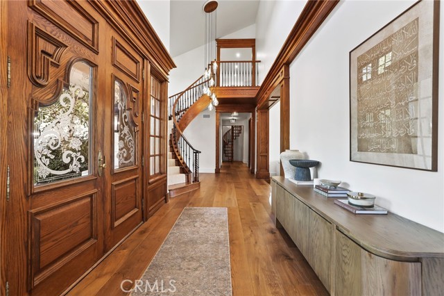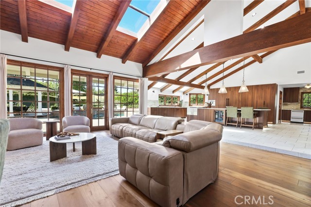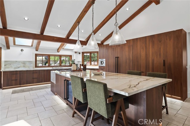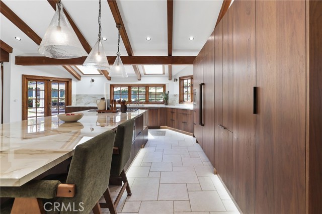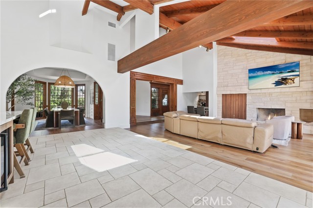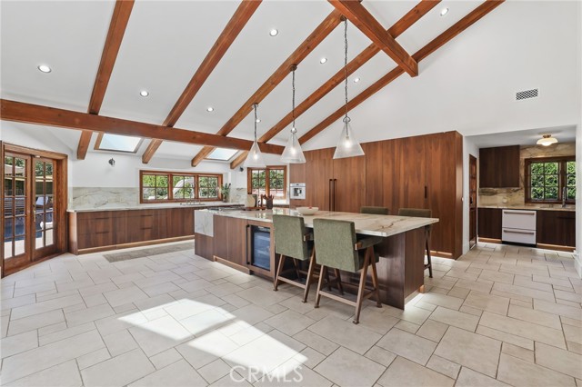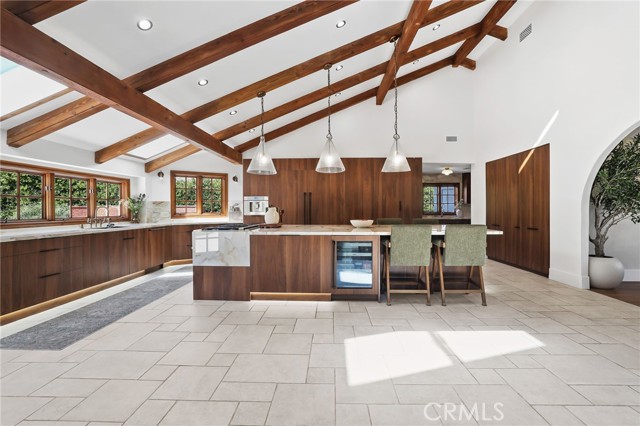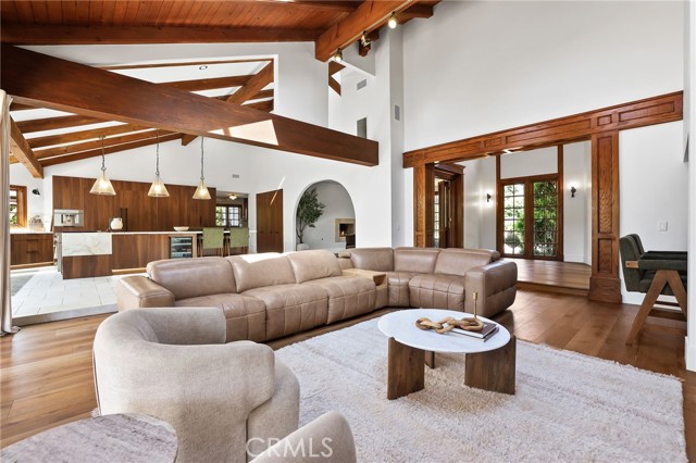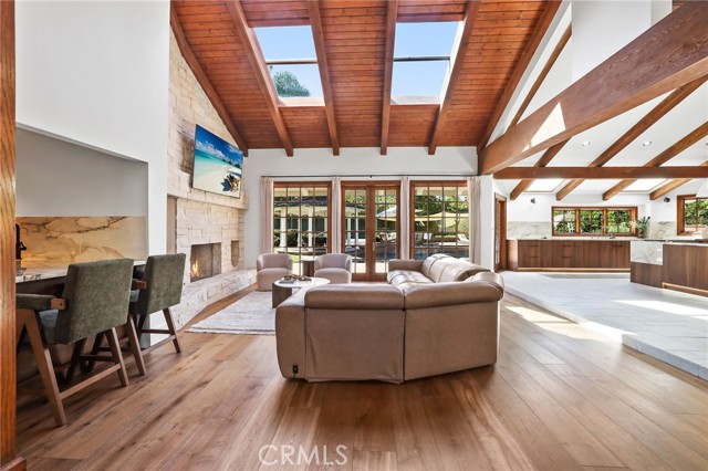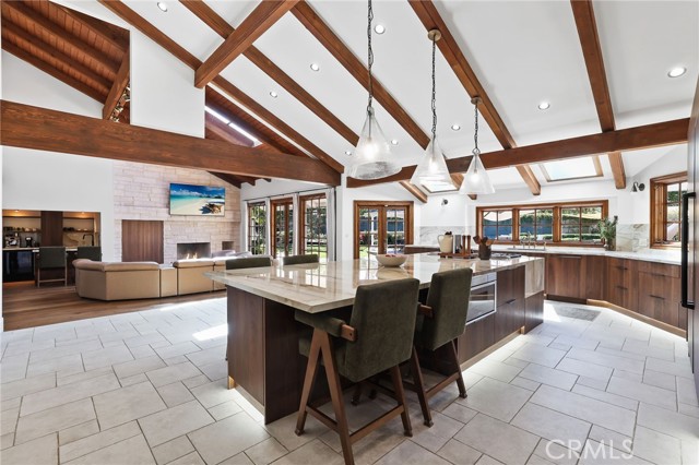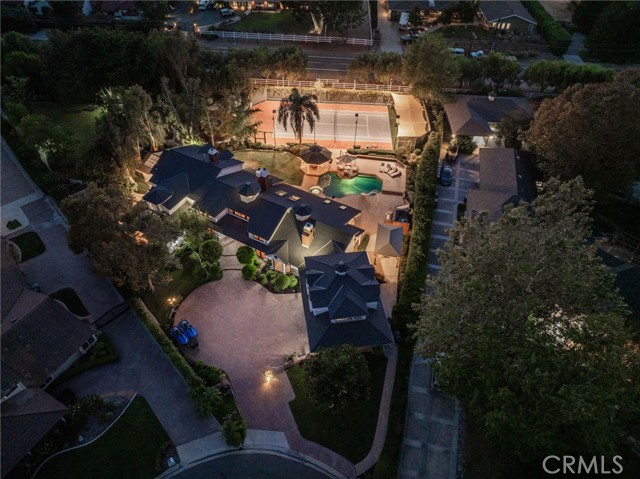 Discover The Ranch on Rodeo Drive — where equestrian tranquility meets ultimate luxury living! This extraordinary estate nestled in the prestigious community of Orange Park Acres offers the perfect balance of privacy, elegance, and modern sophistication. Privately gated on cul-de-sac with a full acre lot, the 7-bedroom, 5.5-bathroom estate spans over 7,000 sq. ft. of exquisitely reimagined living space, blending timeless details with cutting-edge design. Enter through grand double doors into soaring vaulted ceilings, dramatic exposed beams, and walls of glass that fill the interiors with beautiful natural light. Imported Spanish travertine, European oak floors, and Belgium-crafted walnut cabinetry showcase the finest materials sourced from around the world. The chef’s kitchen is a true showpiece—anchored by European stone counters, sleek custom cabinetry, and a full suite of Custom Thermador professional appliances, including a Pro Grand range and dual built-in refrigerators. Vaulted beam ceilings complement the custom oak cabinetry, while a hidden butler’s kitchen with Café appliances provides seamless entertaining and effortless preparation. Multiple living and dining areas flow with ease, highlighted by a dramatic single-slab travertine fireplace imported from Spain. The primary suite is a private retreat, complete with multiple walk-in closets featuring custom built-ins and a spa inspired bath with a floating soaking tub. A one-of-a-kind atrium inside the primary bath offers endless possibilities: transform it into a wellness room with a sauna, cold plunge, or yoga studio—bathed in natural light year-round! Additional amenities include your own dedicated gym, private home office, a spacious bonus room or private movie theater with a full bath, and a full EV charging station. The thoughtful layout ensures the home feels inviting and functional, yet never overwhelming—designed to live as a true family estate. Outdoors, the estate transforms into a private resort: a sparkling pool and spa, full-size tennis court, shaded gazebo, animal coupe and manicured lawns designed for entertaining. With equestrian zoning and a private gate offering direct access to the horse trail behind the property, this estate delivers a rare opportunity to pair world-class luxury with the tranquility of country living. Suburban living with close proximity to all Orange County has to offer - this is truly a generational ranch that may never hit the market ever again!