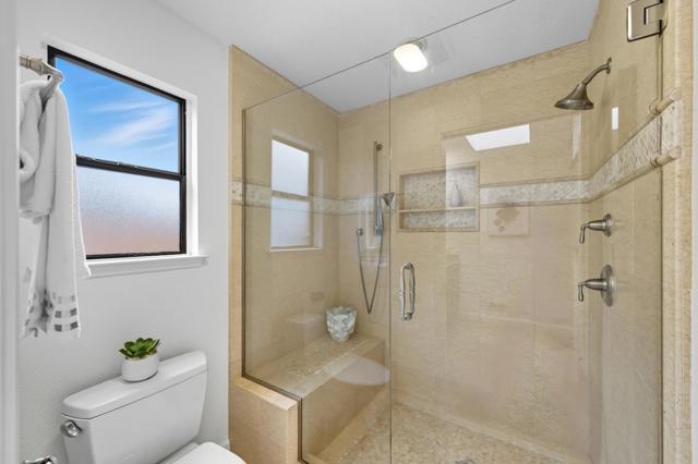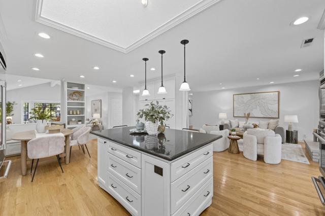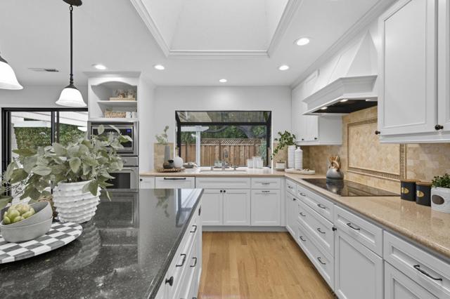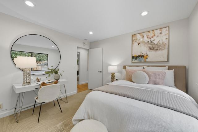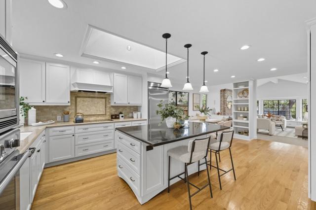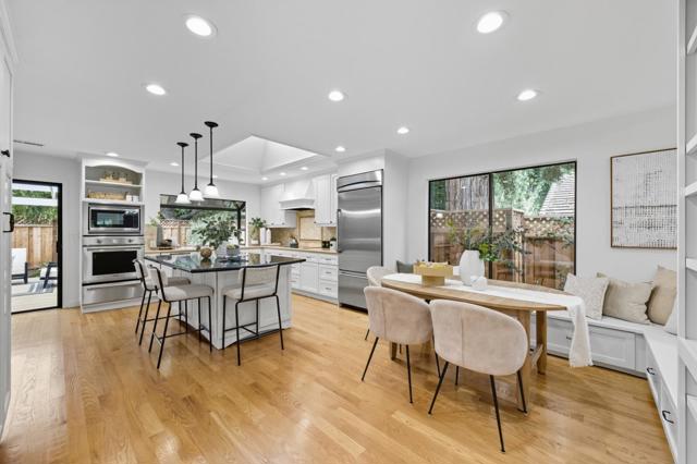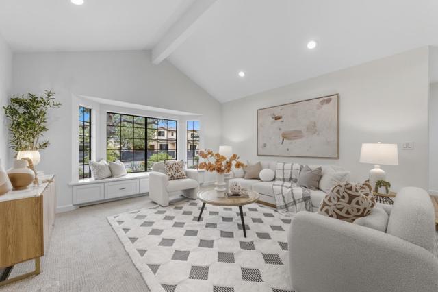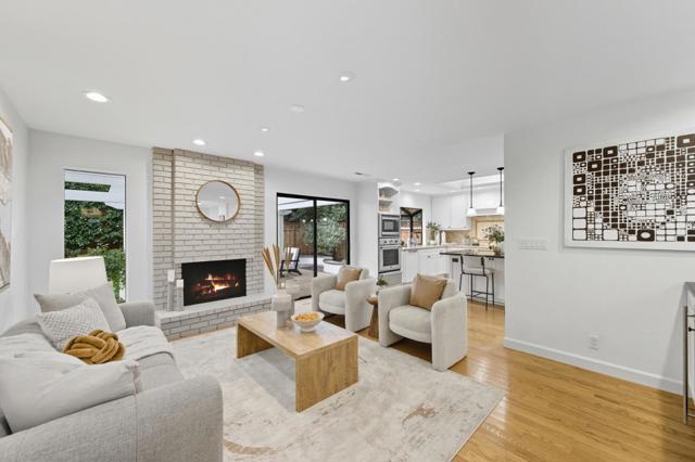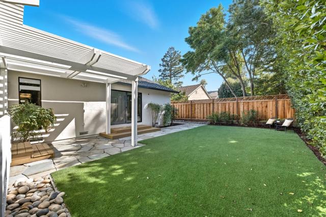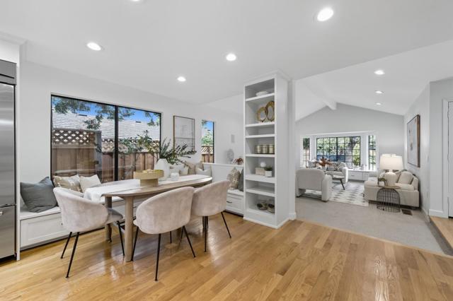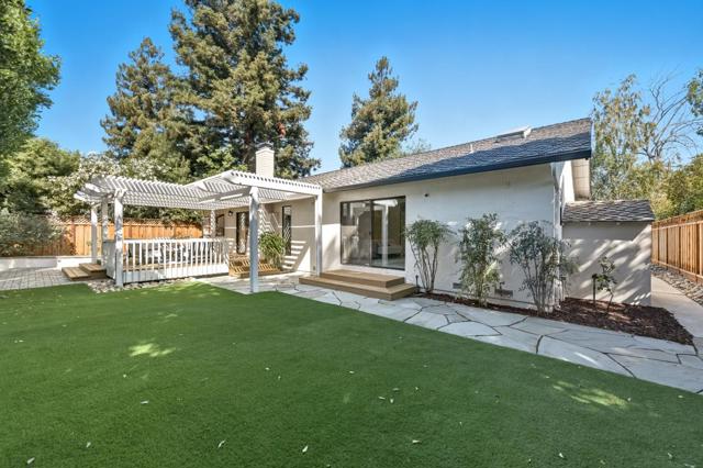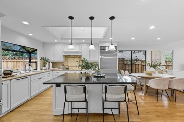 Stunning four-bedroom, two-and-a-half-bath showcase home brimming with natural light and thoughtful updates! Soaring vaulted ceilings, six skylights, and a remodeled kitchen with bay window, layered lighting, and cozy window seat create an airy, inviting atmosphere. The ideal single level layout includes a separate living room with charming window seats plus a great roomstyle kitchen family room, perfect for modern living and entertaining. A rare three-car garage and abundant storage add convenience. Step outside to a sun-drenched deck with pergola, a low-maintenance yard with artificial turf, and mature fruit treesMeyer lemon, pomegranate, and Anna applealongside a stately front oak tree. Perfectly located just steps from parks like Oak Elementary and its park, with easy access to Cooper & Cuesta Parks, Stevens Creek Trail, El Camino Hospital, and highways 85/280yet wonderfully peaceful and quiet. Welcoming neighbors, and possible history as the communitys showcase model make this home truly one-of-a-kind, offering the very best of Mountain View living.