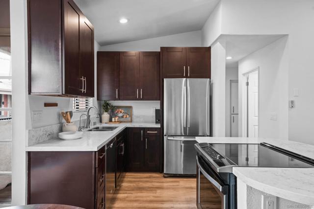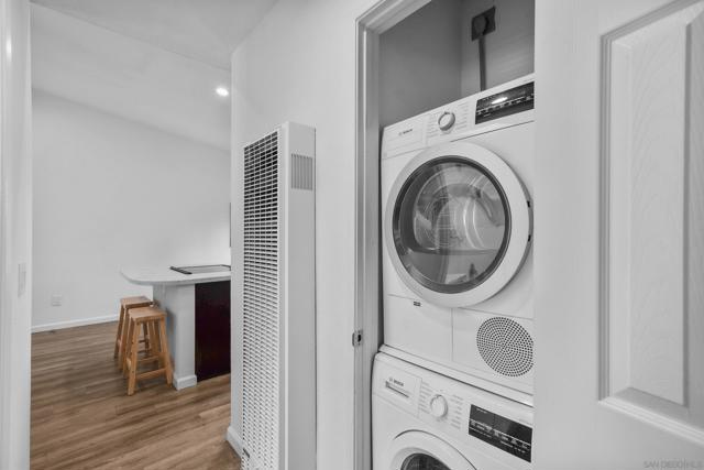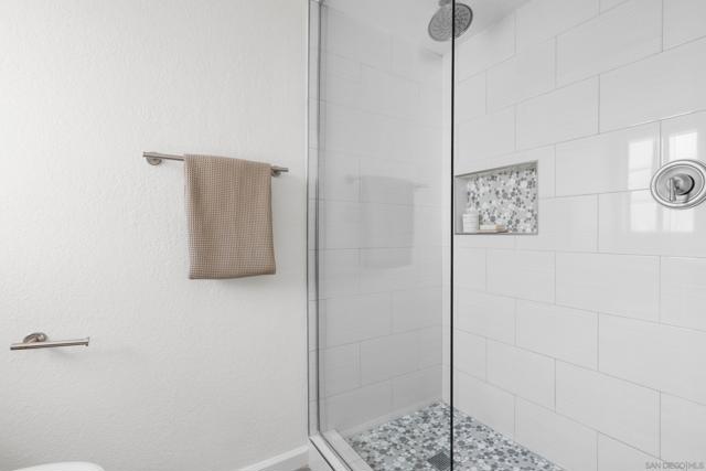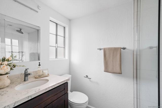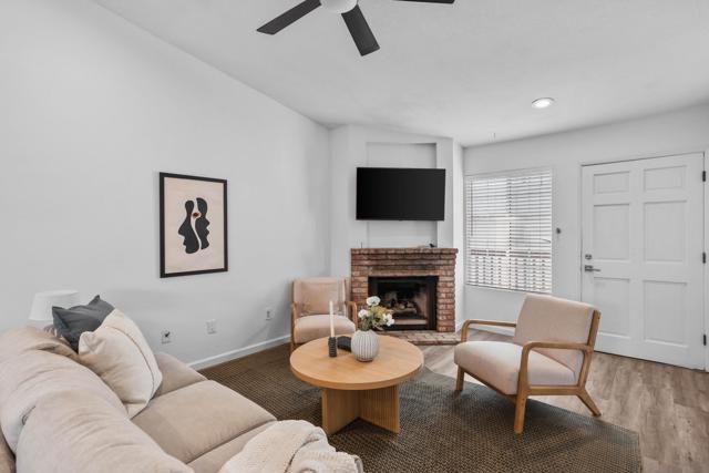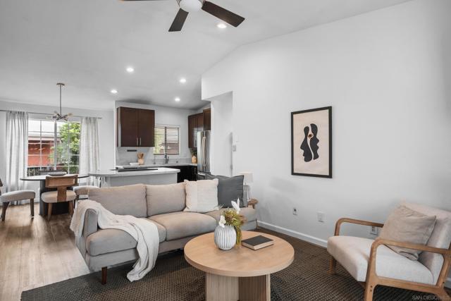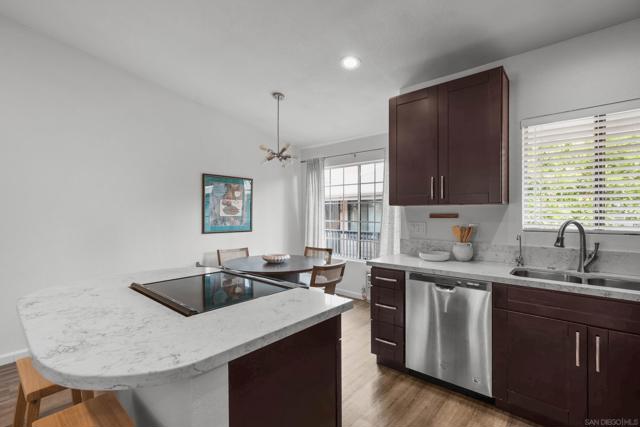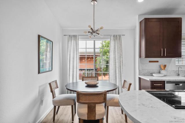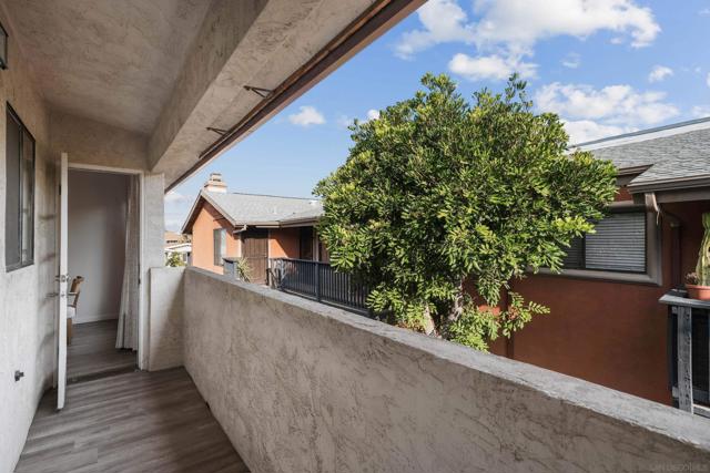 Welcome to this bright and inviting top floor condo in the heart of vibrant University Heights. This home features an open layout that maximizes light and flow with lots of windows, 2 balconies, and vaulted ceilings! Step inside to discover a living area anchored by a cozy fireplace, perfect for relaxing evenings. The adjacent dining and living rooms lead to a private balcony, ideal for morning coffee or a quiet spot to unwind. The kitchen and baths have been completely transformed with modern finishes—bright, clean, and ready to entertain. Both bedrooms are generous in size, each with closet space, and the second bath provides added convenience. Stacked Bosch washer/dryer ensures in-unit laundry ease. The condo includes a detached garage, adding secure parking/storage, and the HOA covers water—no more juggling utilities. Situated just a half block from Adams Avenue — the well-known “Antique Row” — you’ll enjoy immediate access to trendy restaurants, eclectic shops, cafes, and nightlife. With its amazing location, open layout, and thoughtful upgrades, this condo is a great fit for anyone looking to enjoy one of San Diego’s most desirable neighborhoods.