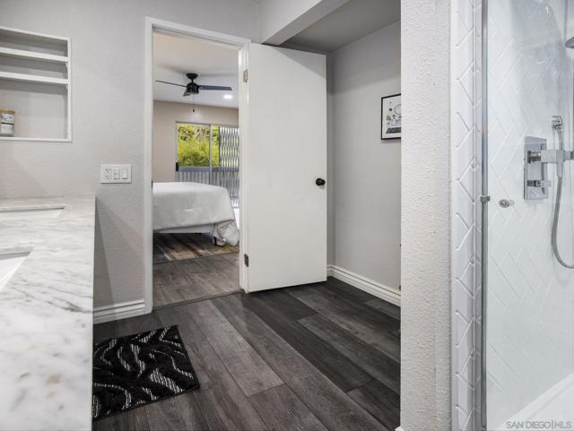Welcome to this spacious and comfortable Fashion Valley condo, featuring two primary-style bedrooms on opposite sides of the home, each with a walk-in closet, direct balcony access, and its own bathroom for the perfect blend of privacy and comfort. Enjoy the extra-large balcony overlooking a peaceful stream, where you can relax, unwind, or even fall asleep to the soothing sound of running water. Inside, you’ll find recessed lighting, ceiling fans throughout, central A/C, and a cozy electric fireplace. Recent updates include a fully remodeled kitchen, a full bathroom remodel with added dual sinks, and partial renovations done to the second bathroom—all completed within the last 3 years. This end-unit home also comes with two parking spaces: one in the gated underground garage and one outdoor assigned space, both conveniently located directly adjacent to the unit. The HOA covers cable TV, water, trash, and more while the community-provided amenities include a pool, spa, gym, clubhouse, tennis courts, barbecue area, and pet area...all set in a gated, beautiful park-like setting. And when you are ready to explore the town, you will have easy access to everything since you will find yourself perfectly situated near Fashion Valley Mall, beaches, downtown, and all of San Diego’s best attractions. FHA and VA approved—with a VA assumable loan at 4.719%! Don’t miss your chance to own this rarely available gem in one of San Diego’s most desirable locations!