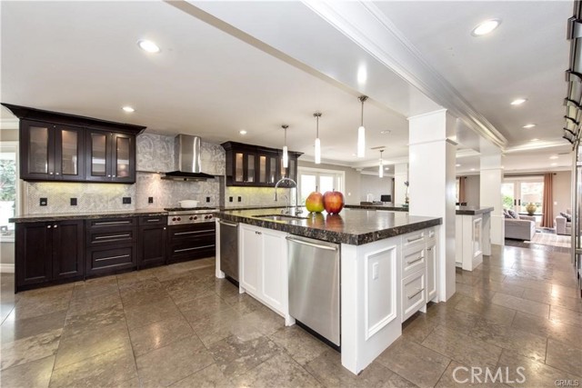 The "Most prized home" of Turtle Rock . Unquestionably, the most unique and beautiful custom home to come of Turtle Rock, perched on its own hilltop on anexpansive flat double-lot with 270° view from mountains to ocean, This is the most desired lot in the community with a 360* of no adjacent homes, this is a standalone home with only the seldom occupied community pool behind it. This elegantly designed home has been completely remodeled with the highest quality wood,stones, wainscoting, molding, custom built-ins and the finest craftsmanship The home has 6 bedrooms, 4.5 baths, an additional bonus suite with a kitchenette and3-car garage. Soaring ceilings lead to formal living with fireplace; gourmet kitchen hosts 2 large extra large islands with custom top., designer appliances furnishesthe kitchen with Wolf, Sub-Zero, Miele appliances,combined with fine cabinetry with a walk in pantry. Family and dining room french doors open to covered patioand expansive European style garden. Downstairs includes guest bedroom, office/6th bedroom, a full bath and powder room. Upstairs boasts a resort-like mastersuite with white panel ceiling, 6' high white wainscoting and french doors gives access to the oversize balcony for you to enjoys the panoramic views and oceanbreeze. Convenience amenities include CAT6 and coax wiring throughout the house, with Surround Sound and 3-zone HVAC. Best schools, Low HOA, No Mello-Roos,This IS the house all the neighbors wish they owned and envy driving by.