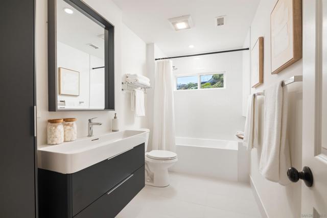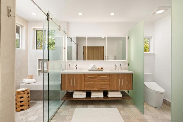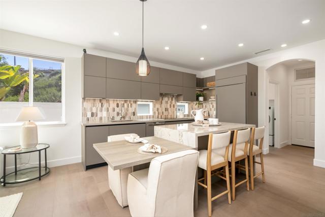 Beautifully remodeled home tucked away on a quiet North Pacific Beach cul-de-sac right along the Bird Rock/La Jolla border! This stunning 4 bedroom residence blends timeless design & modern luxury perfectly with its elegant designer kitchen, luxe baths, rich hardwood floors, soaring ceilings & spacious living areas! Enjoy an effortless San Diego lifestyle in this immaculate low maintenance lock & leave property, ideal for full time or part time/seasonal residents alike! In a truly fantastic location, it's just a quick walk or bike ride away from premier beaches, popular dining and shopping! Add the bonus of a spacious 3-car garage with ample storage and you've got it all, including room for your PB golf cart too! Additional Details: The soaring ceilings and open loft create a bright airy ambiance, complimenting the seamless floorplan. The main level showcases a spacious formal living room and an elegant dining area that flows effortlessly into the open-concept family room and a chef-caliber kitchen. Designed with Italian cabinetry, illuminated pull out drawers and top-tier Sub Zero, Bosch & Wolf appliances, the kitchen also features quartz counters and a custom eat-in island with integrated dining table. Unwind by the sleek new gas fireplace with thermostat control for cozy evenings spent in comfort. Upstairs the thoughtfully designed layout includes four bedrooms and two beautifully remodeled baths. The luxurious primary suite with spa-inspired bath features curbless walk-in shower, smart bidet toilet, dual sink vanity with lighted mirror cabinetry, radiant heated tile floors and a custom walk-in closet with abundant storage. The second full bath offers high-end finishes, a soaking tub/shower combo and extra storage. The three additional bedrooms offer flexible use as guest rooms, children's rooms or home offices, one with peek ocean views. The upstairs landing area creates an ideal reading nook or study space, bathed in natural light. Dual sliding doors from the dining and family rooms provide a seamless indoor-outdoor flow onto the patio which is an inviting oasis for alfresco dining and effortless entertaining. Other highlights include a chic powder room on the main floor and a convenient laundry room located near the direct access 3car garage. Be sure to explore the Matterport 3D URL link to get the full walkthrough experience of this fabulous property!