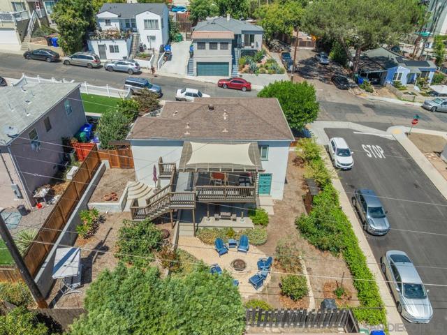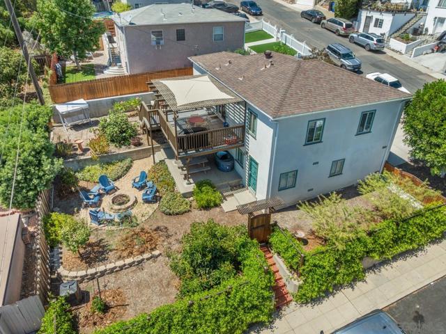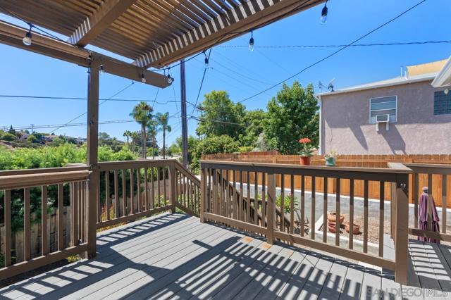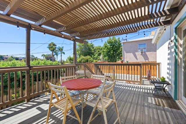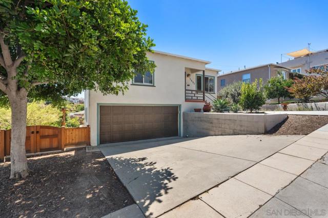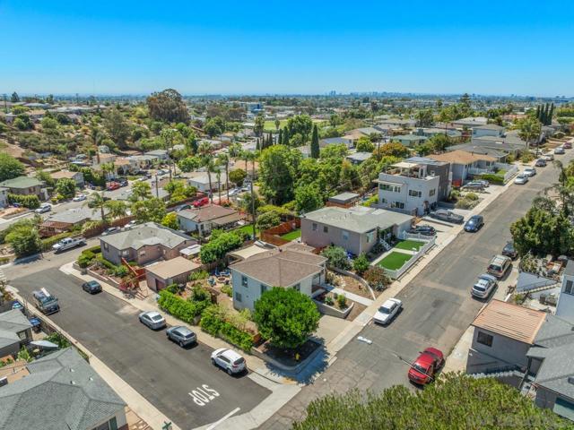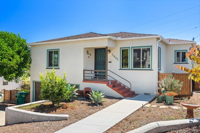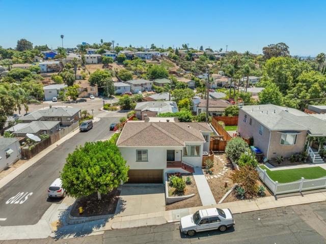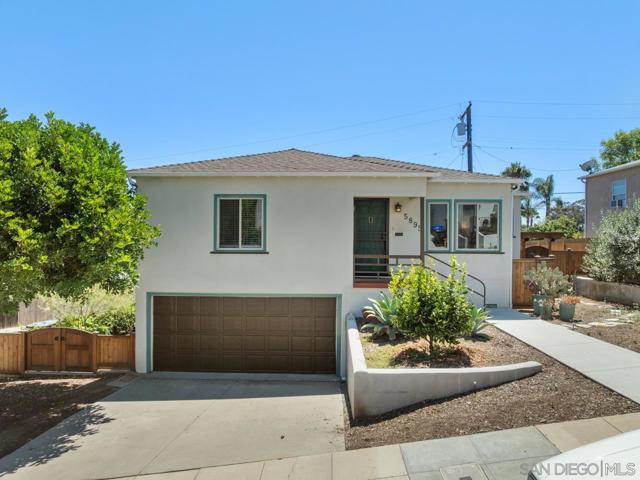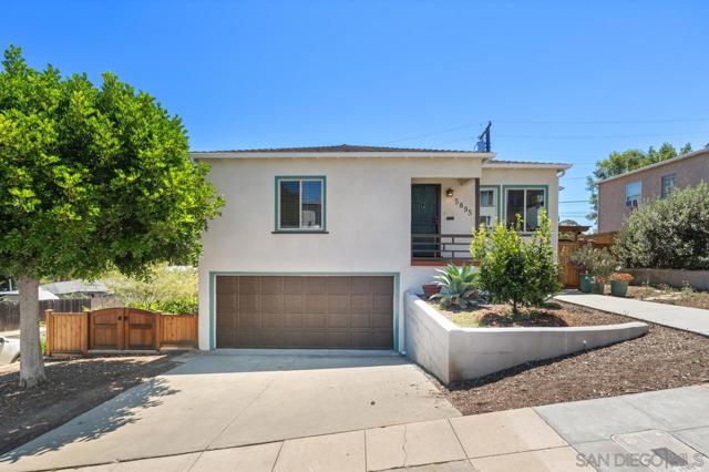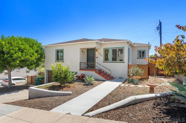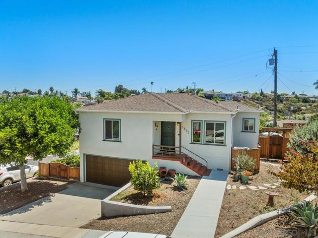 Beautiful Elevated Corner View lot Art Deco Inspired home in El Cerrito (near SDSU), lives larger than square footage, huge deck off dining room with large garden space. Light and bright throughout... Gleaming wood floors, updated kitchen stainless appliances and bath, 2 car garage with 2 off street parking spaces. Laundry inside. Room to build and ADU or 2. Unfinished room under home has outside and garage access (could be finished for Jr ADU). Some original built-ins with Bake-Lite handles, too. Fully fenced with fruit trees, fire pit and room to roam. This will not last....