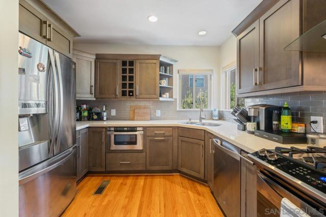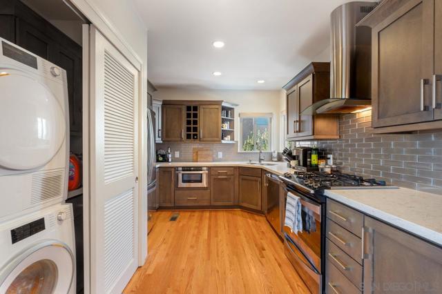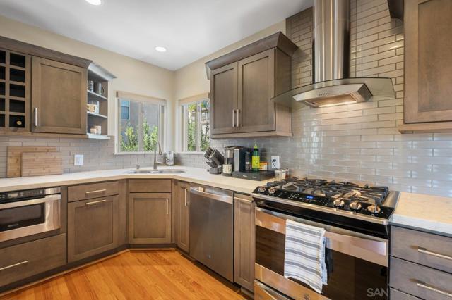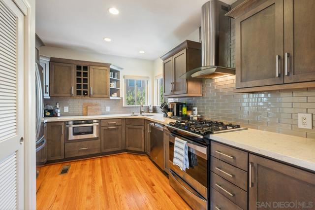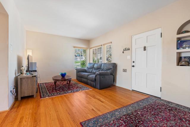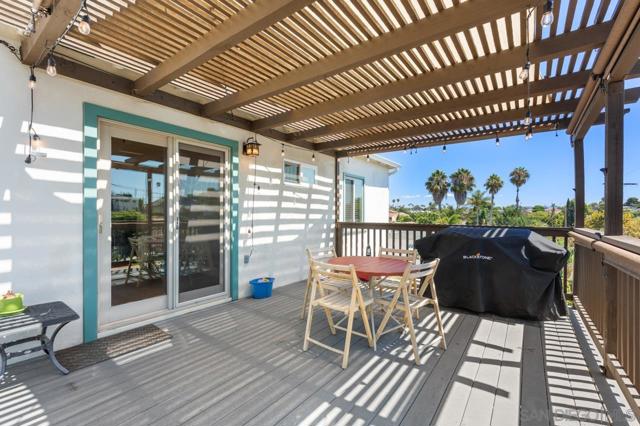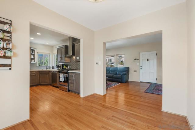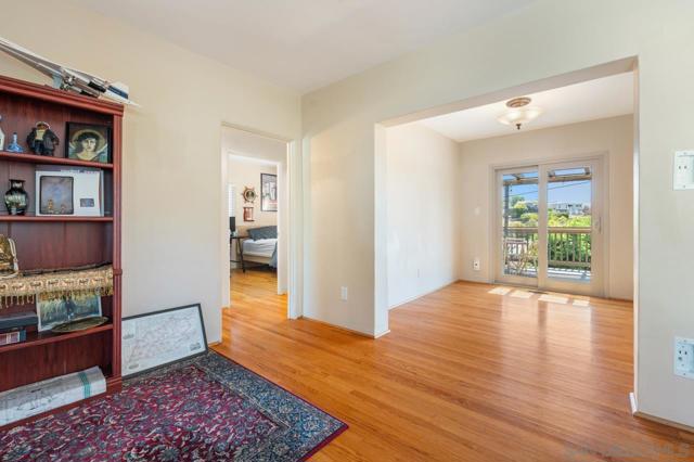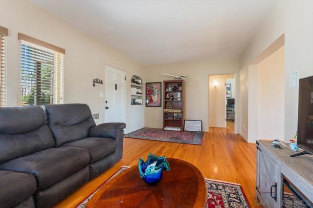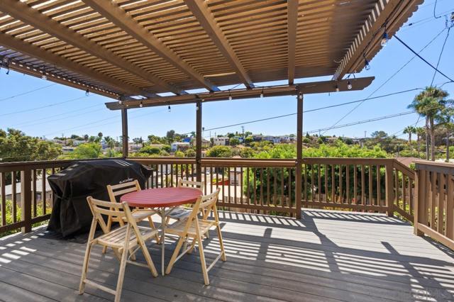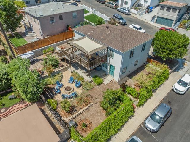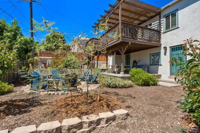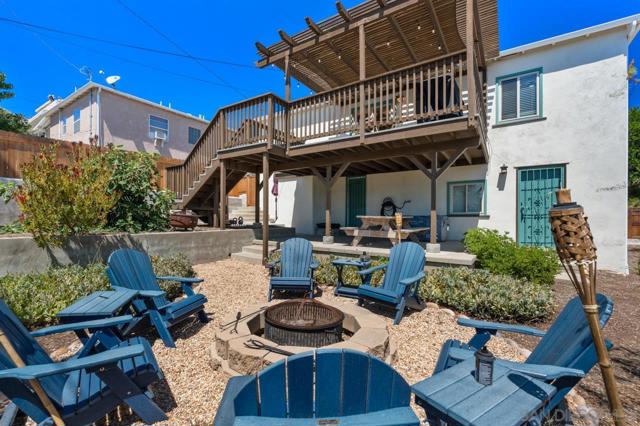 Beautiful Elevated Corner View lot Art Deco Inspired home in El Cerrito (near SDSU), lives larger than square footage, huge deck off dining room with large garden space. Light and bright throughout... Gleaming wood floors, updated kitchen stainless appliances and bath, 2 car garage with 2 off street parking spaces. Laundry inside. Room to build and ADU or 2. Unfinished room under home has outside and garage access (could be finished for Jr ADU). Some original built-ins with Bake-Lite handles, too. Fully fenced with fruit trees, fire pit and room to roam. This will not last....