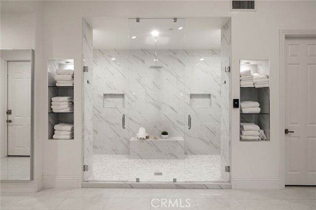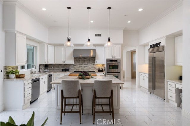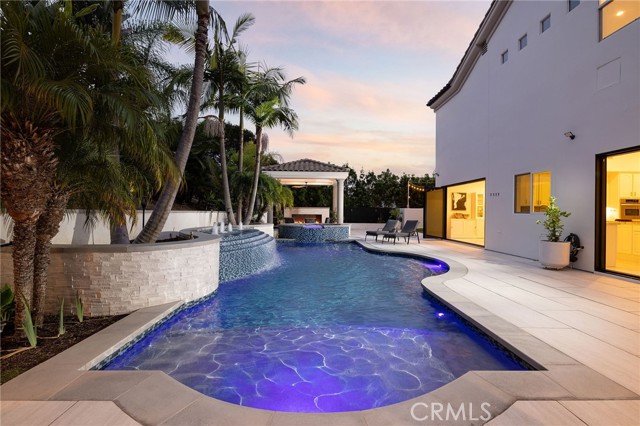 Set within the scenic, gated enclave of Hunters Creek, this exquisitely renovated estate blends timeless elegance with modern comfort, offering an ideal setting for both everyday living and entertaining. Nestled on nearly a half-acre, the home pairs spacious indoor living with a fully reimagined resort-style backyard. A grand double-door entry welcomes you to a beautifully refreshed interior where new flooring and fresh paint inside and out create a bright, cohesive flow. Just off the entry sits a private office, perfect for work or reading. The formal living room impresses with 20-foot ceilings and a striking fireplace, seamlessly connecting to the formal dining room, ideal for hosting memorable gatherings. The gourmet kitchen has been completely transformed with Taj Mahal quartzite countertops, custom cabinetry, new Sub-Zero refrigerator, stove and vent, and an enlarged walk-in pantry. This chef’s space flows effortlessly into the light-filled breakfast nook, expansive family room, and wet bar, creating a warm, central hub with views of the resort-style backyard. The main level also includes a beautifully remodeled guest suite with ensuite bath, powder room, laundry room, and a brand-new elevator offering convenience to the upper floor. Upstairs, a spacious family retreat area opens onto a private balcony overlooking the grounds. Four bedrooms, each with remodeled ensuite bathrooms and custom walk-in closets, provide comfort and privacy. The primary suite is a true haven with a two-sided fireplace, dual walk-in closets, and a spa-inspired bathroom featuring a massive walk-through shower, dual vanities, and elegant finishes. The backyard is a showpiece, completely redesigned with three distinct living areas: a covered dining pavilion, outdoor kitchen with built-in BBQ and refrigerator, and a fireplace lounge perfect for evening gatherings. A new saltwater pool and spa, powered by a 20,000-gallon pool system, sits beside a stacked stone waterfall and generous grassy area, framed by meandering hillside paths and gardens. New fencing and gates enhance privacy and style, creating a true retreat. Additional upgrades include all-new piping throughout, owned solar system, a state-of-the-art surround sound system, extra ceiling storage in the garage, and new cabana doors. Within walking distance of the prestigious St. Margaret’s Episcopal School, this extraordinary estate offers an unparalleled lifestyle of luxury, craftsmanship, and meticulously planned design.