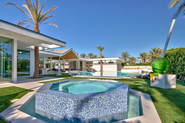 Experience the pinnacle of luxury living in the heart of Makena--an exclusive retreat designed for those who demand excellence. This striking new estate, inspired by legendary architect Joseph Eichler, offers an unrivaled blend of style, innovation, and privacy, perfect for high-profile clients seeking both comfort and grandeur. Imagine entertaining in an 18-foot-ceiling open-concept living space with breathtaking mountain views, featuring a mesmerizing book-matched porcelain fireplace and a striking wood-paneled A-frame roofline that exudes sophistication. The chef's kitchen, with full white oak cabinetry, a 20-foot island, and cutting-edge Miele appliances, is ideal for hosting and creating culinary masterpieces. Seamlessly integrated with cutting-edge Alexa-based smart home technology, control your lighting, AV, and climate with a single touch--perfect for the modern lifestyle of sophistication. The luxurious primary suite features floor-to-ceiling glass overlooking your private pool and spa, complemented by a spa-inspired bathroom with a double walk-in shower, freestanding tub, and dry sauna.Set on over half an acre, your exclusive outdoor oasis includes an octagon-shaped infinity pool, a spa retreat, an outdoor kitchen with a 20-foot island, and multiple fire features--all designed for unforgettable gatherings or private relaxation. This isn't just a home--it's a statement of success, artistry, and impeccable taste. Elevate your lifestyle with this extraordinary desert sanctuary. For discerning individuals who value privacy, style, and innovation--this is your next masterpiece. Schedule your private tour today and step into a world where luxury knows no limits.