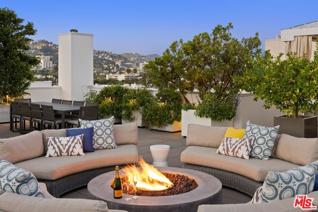 Beverly Hills Penthouse with Private Rooftop Oasis! Indulge in the pinnacle of Beverly Hills luxury on Palm Drive, where this one-of-a-kind penthouse retreat offers over 2,000 sq ft of open-air living space and spectacular 360-degree views of Los Angeles. From Beverly Hills and Century City to the Hollywood Hills, Bird Streets, and Griffith Park Observatory, every sunset and skyline moment is yours to savor. With direct elevator access to both the penthouse and rooftop, this residence ensures privacy, sophistication, and ease at every turn. The rooftop "living room in the sky" is designed for unforgettable entertaining, featuring manicured gardens, fruit trees, an outdoor spa, cabana dining, fire pit, and a full gourmet kitchen with expansive barbecue area. Inside, the 3-bedroom, 3.5-bath penthouse combines elegance with modern convenience: Expansive windows and a massive sliding door system connect the large balcony and living room for seamless indoor-outdoor living. A spacious great room with open dining and lounge areas anchors the home, complemented by a custom-crafted bar, hardwood floors, wine fridge, and immersive surround sound. The Miele-appointed kitchen features built-in plumbed coffee and filtered water systems, paired with bespoke cabinetry and sleek finishes. The master suite is flanked by two private bedroom suites, each with its own ensuite bath and closet for exceptional privacy. A custom-designed walk-in closet enhances the master suite. An additional bonus space functions as a private office or dressing room. Every detail has been curated for refined comfort: automated drapes, custom-designed closets, glass shelving, and a discreet owner's lobby with singular elevator access. The building provides full-service amenities, including: 24-hour concierge and security, Fitness center and owner's lounge. Three secure side-by-side parking spaces with EV charging, Wine closet and additional garage-level storage. Perfectly located in the heart of Beverly Hills, the residence offers the rare luxury of peace and privacy while being just moments from Bristol Farms, and the world-renowned shops and dining of Rodeo Drive. This is not simply a penthouse it is an irreplaceable lifestyle, elevating Beverly Hills living to its highest level.