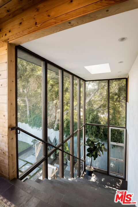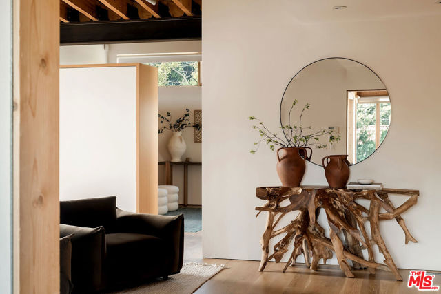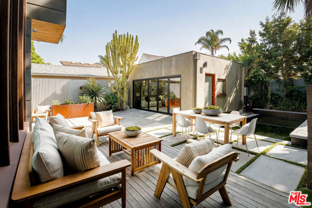 A rare fusion of historic Venice charm and striking modern architecture, this redefined 1922 Craftsman stands as a design-forward masterpiece on one of the best streets in Venice. Completely reimagined with meticulous attention to detail, the residence achieves a seamless balance between soulful warmth and bold contemporary form. The home begins with the inviting scale of a classic Venice bungalow, warm and intimate, before unfolding into dramatic contemporary spaces at the rear. Walls of steel-framed glass dissolve the boundary between indoors and out, while exposed wood and architectural steel details ground the home in authenticity. The open-concept living and dining areas flow into a chef's kitchen defined by charcoal-stained cabinetry with brass hardware, poured concrete countertops, dramatic grey marble backsplash, and a suite of top-tier Sub-Zero and Bertazzoni appliances, a space both functional and artful. The primary suite is a private retreat perched above it all, framed by soaring butterfly ceilings, expressive wood-and-steel joists, and abundant natural light. A custom white oak walk-in closet leads to a spa-worthy bath featuring oak cabinetry, radiant heated concrete floors, Watermark fixtures, and full marble slabs that elevate every detail. Two additional bedrooms and a dramatic family room with double-height ceilings complete the main house, each space thoughtfully oriented to maximize scale and flow. A wall of glass at the back staircase rises floor-to-ceiling, casting the interiors in a constantly shifting glow and connecting seamlessly to the outdoor environment. Outside, the backyard transforms into a true entertainer's stage: a raised dining terrace, lounge seating, lush greenery, and a sleek pool that reflects the architecture like a mirror at dusk. The property also includes a versatile converted garage ADU, complete with accordion glass doors and a full bathroom finished with handcrafted Moroccan Zellige tile. In addition, a temperature-controlled wine room adds a refined architectural touch, combining function with sophistication. Together, these spaces provide unmatched flexibility, ideal as a fourth bedroom, guest suite, private gym or creative studio. Every element of this home reflects intentional design, elevated craftsmanship, and a deep connection to Venice's artistic spirit. It is not just a house, but an architectural statement, a Venice dream, realized.