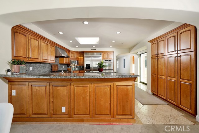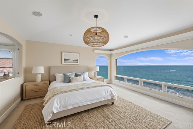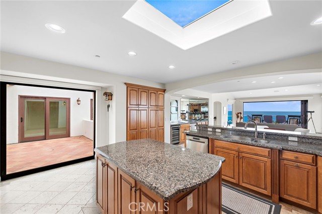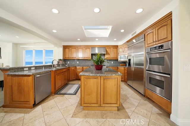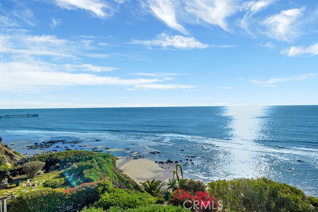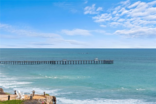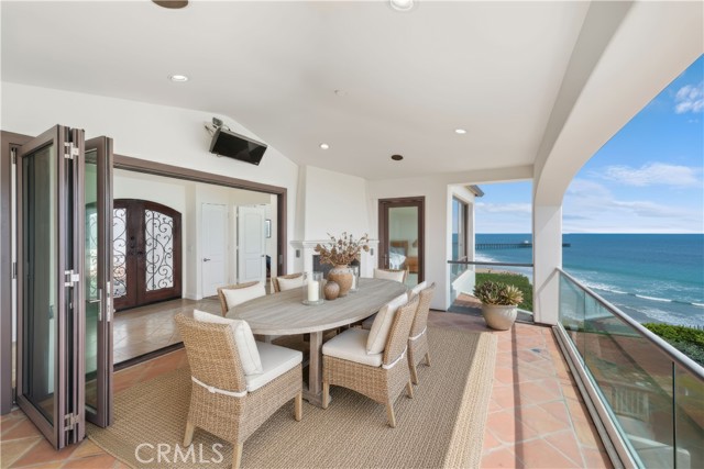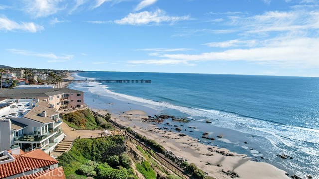 Positioned atop a secluded bluff overlooking the Pacific, this oceanfront penthouse in San Clemente presents a rare opportunity to experience coastal living with both privacy and architectural distinction. One of only three residences in an intimate building, the home captures sweeping views of whitewater, city lights, and the iconic San Clemente Pier from its elevated vantage point. Spanning approximately 3,287 square feet on a single level, the interior is accessible by private elevator or a spiral stair rising from the courtyard. The layout is open and intentional, with the kitchen, dining area, and living room unfolding toward a full-width oceanfront terrace. Floor-to-ceiling glass invites natural light and frames uninterrupted coastal views, while a terrace fireplace creates a focal point for morning coffee or evening gatherings. The kitchen is both functional and expressive, anchored by a central island and detailed with granite countertops, a skylight, and walk-in pantry. A suite of KitchenAid appliances, including a built-in refrigerator, blends utility with understated design. Adjacent to the kitchen, a dedicated wet bar with wine refrigeration supports seamless entertaining. The dining space is defined by custom cabinetry and a second fireplace, offering warmth and cohesion to the open plan. The primary suite is oriented toward the ocean, with sliding doors that open to the terrace. A custom walk-in closet, spa-like bath with jetted soaking tub, walk-in shower, and overhead skylights contribute to a quiet, restorative atmosphere. Two secondary bedrooms share a sophisticated Hollywood-style bathroom, while a spacious media room with vaulted ceilings, a corner fireplace, and private balcony offers added flexibility for hosting or retreat. Additional features include secure subterranean parking for four vehicles and a location just moments from downtown San Clemente’s shops, cafés, coastal paths, and beaches. This luxury penthouse is a rare expression of refined coastal living in one of Southern California’s most sought-after enclaves.