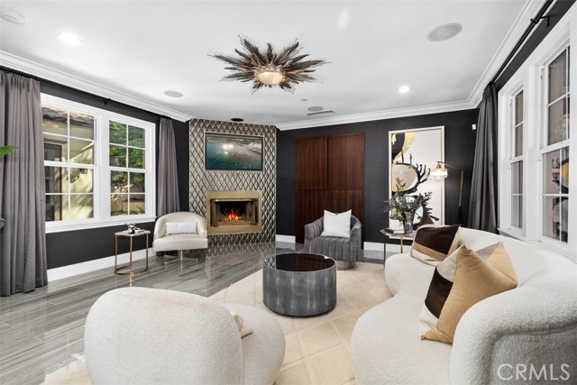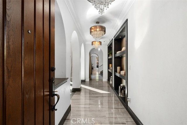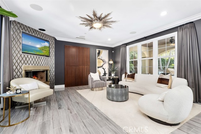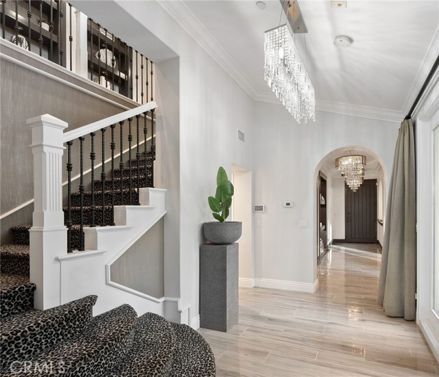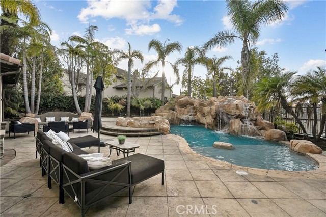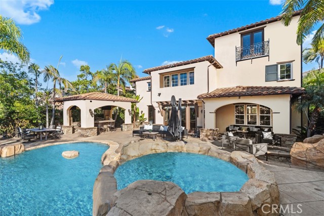 Tucked away at the end of a private cul-de-sac on one of the largest lots in the prestigious guard-gated community of Covenant Hills in Ladera Ranch, this stunning estate offers a rare blend of privacy, luxury, and family-friendly design. From the moment you arrive, the extended driveway and grand motor court set the tone—providing ample parking, ideal for gatherings or growing families. Spanning approximately 4,511 square feet, this beautifully upgraded home sits on an expansive lot that delivers both scale and serenity. Surrounded by mature landscaping and peaceful canyon views, it offers a true retreat just minutes from top schools and neighborhood parks. Inside, elegant, light-filled interiors, high-end flooring, and an open-concept layout make the home perfect for everyday living and entertaining. A dramatic custom staircase welcomes you, while soaring ceilings and refined finishes highlight quality craftsmanship. At the heart of the home is the chef-inspired kitchen— remodeled with a massive quartz island, professional-grade Viking 12-burner range, Sub-Zero refrigerator and freezer, double ovens, custom cabinetry, and walk-in pantry. The seamless flow connects indoor and outdoor spaces. Step outside to a resort-style tropical oasis, featuring a custom heated saltwater pool with cascading waterfalls, slide, and oversized spa. Enjoy movie nights under the stars with 3 outdoor TVs, surround sound, a fire pit, and a fully equipped kitchen and bar with built-in BBQ—perfect for entertaining. A tranquil courtyard with an outdoor fireplace offers a peaceful retreat. The luxurious primary suite features a private sitting area, spa-like bath, and a spacious loft currently used as a gym and office. Additional upgrades include a whole-house water filtration system, premium finishes, and thoughtful details throughout. In a coveted, family-oriented neighborhood, this home delivers space, security, and elegance—with room to host unforgettable gatherings and enjoy the best of Southern California living.