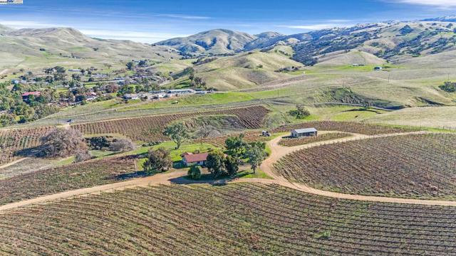 Premium 100 acre vineyard residence with abundant Ag and domestic water. Breathtaking views, multiple premium building sites. Many potential uses: 20 acre estate lots, winery, brewery, B & B, restaurant, equestrian use, and many others under A-CA Zoning. Continue the vineyard lease for income, cultivate the vines yourself, or change its use. The Madden Ranch is the most quintessential plot of land in the Livermore Valley. The contiguous 100 acres boasts commanding and awe inspiring views of the entire Tri-Valley. The gentle rolling hills lend the topography intrinsic character with multiple spectacular VIEW building sites. The more than 75 acres of award-winning vineyards were originally planted by Wente. Comprised of Cabernet Sauvignon (43 acres) and Sauvignon Blanc (32.39 acres), the Madden Corral (as it’s known) has been sought after fruit for many years, producing some of the finest wines by the best winemakers in the valley. Want a different variety? Just graft over the mature root stocks to something else. Water- The property is supplied by multiple plentiful water sources. (a substantial value to this property) There is Zone 7 Agriculture water rights that run with the property. There is a domestic (treated) water contract that supplies 33 gallons/min of drinking water. Views: Ridge