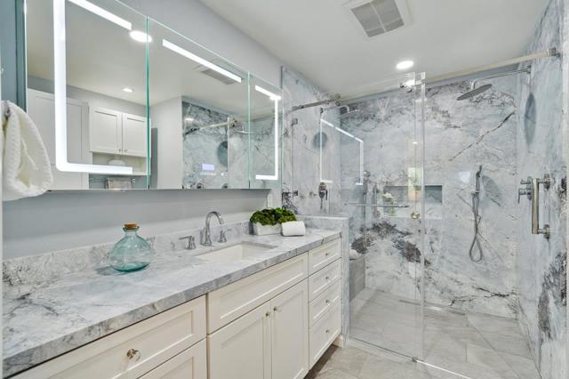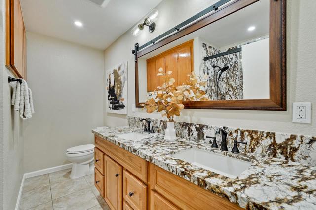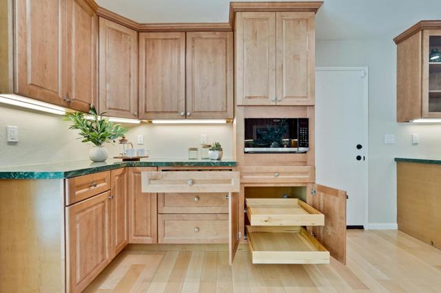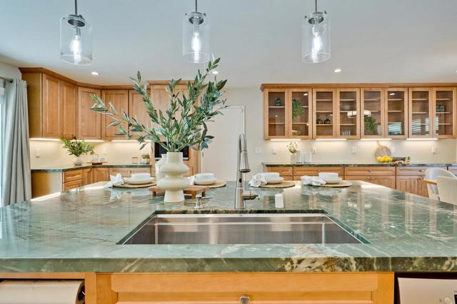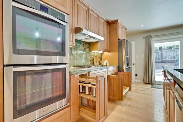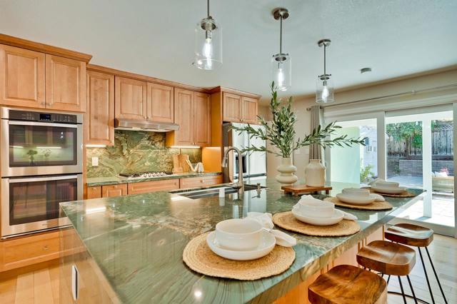 Welcome to this large 5 bedroom home located in the desirable Highlands area of Los Altos. 1590 Vineyard Drive features 4 bedrooms on the spacious main level plus an additional en-suite bedroom in an apartment style living space on the second level complete with a large living room. Some standout features of this great home are an incredible gourmet kitchen with an oversized waterfall island with breakfast bar, extensive high end custom cabinetry with endless surprises of top of the line features to keep you organized and ready for beautiful meals and stylish entertaining. It will be very hard to find a kitchen that compares with these amenities! The oversized Living Room features vaulted ceilings, dual fans, a large bay window and durable maple flooring which is perfect for entertaining or relaxing with friends and family. The Primary Suite has vaulted ceilings, a dream bathroom with beautiful and luxurious features including a dual shower, custom cabinetry and impressive natural stone. The large lot features a beautifully landscaped front yard and low maintenance paver backyard that is exceptional for events, gatherings, BBQs and more. The lot is large enough to create other inspiring options such as lawns, gardens or even a pool/spa! Radiant Heating & Lots of Storage !