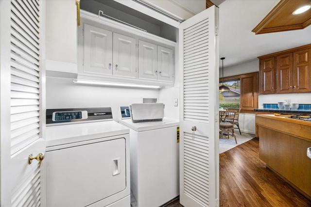 Innately charming, this classic bungalow style home was reimagined to provide gracious space for socializing, cooking with friends or family, working at home and relaxing with privacy. A bespoke kitchen with custom cabinets and yards of counter space, high-end appliances, a breakfast area with TV nook, and room to gather is open to a bright, cozy family room. A "corner office" in the family room has access to the patio. Gleaming oak floors, plantation shutters and custom lighting are marks of attention to detail. House has useful (unfinished) attic and basement space. Special to the property is a detached guest suite with full bath and "private" patio. The detached garage has a separate "vintage" workshop for crafts,hobbies,workout room or whathaveyou. If you are looking for traditional character, enduring design, a convenient location - near Community Center, close to schools and many Palo Alto amenities - this just might be your spot!