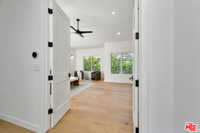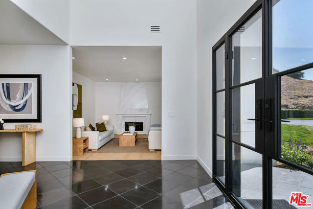 This spectacular, fully remodeled home is located within the prestigious 24-hour guard-gated Mountain View Estates in prime Calabasas. Set on an impressive 17,000 sq ft corner lot, this 5-bedroom, 4.5-bath residence is a true design-forward showplace. A striking metal and glass entry door opens to a dramatic staircase, wide-plank hardwood floors, and new Marvin windows that flood the home with natural light. The reimagined chef's kitchen is the heart of the home, outfitted with top-tier appliances including dual dishwashers, a walk-in pantry, marble countertops, and a built-in serving hub with ice maker and beverage fridge. A pass-through window connects to the expansive outdoor entertaining area. The generous family room, finished with a Venetian plaster fireplace and fully retractable doors, flows seamlessly to the covered patio and backyard beyond. Formal living and dining spaces offer scale and sophistication while remaining functional for modern living. Upstairs, the primary suite is a luxurious retreat featuring a fireplace, sitting area, spa-like bath with glass-enclosed shower, freestanding soaking tub, and a high-end electric toilet. Three additional upstairs bedrooms are spacious and well-appointed. A private office, large utility room, and 3-car garage add to the home's thoughtful layout. The resort-style backyard is designed for year-round enjoyment, complete with a redesigned pool and spa with Baja shelf, built-in BBQ, generous grassy areas, and multiple zones for lounging and entertaining. This is a rare opportunity to own a turnkey property that checks every box, style, function, and setting.