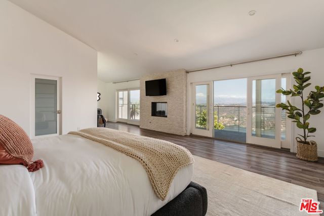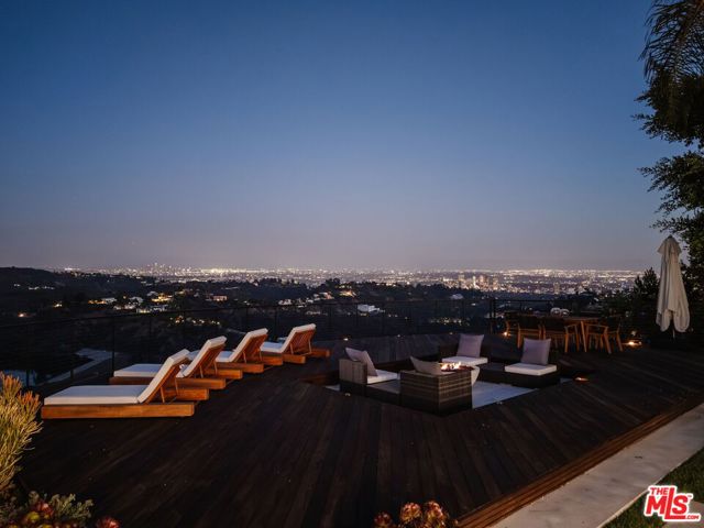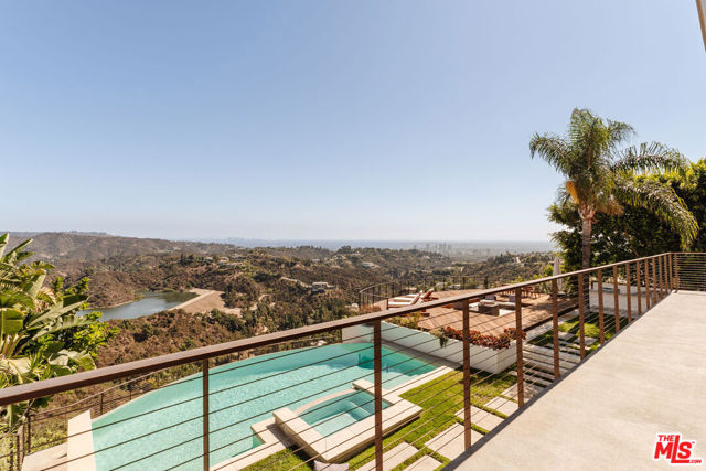 It's rare to find sweeping panoramic views and a home designed for effortless luxury but 2028 Stradella delivers it all. Tucked away on an expansive 28,000+ sq. ft. lot in the hills of Bel-Air, this 4,300+ sq. ft. residence offers the ultimate escape, where city energy meets tranquil retreat. As you walk in, you are greeted by a grand foyer with an elegant spiraling staircase, setting the tone for the entire home. Nearly every room captures commanding vistas from the shimmering Stone Canyon Reservoir to the skyline of Downtown Los Angeles, Century City, Palos Verdes Peninsula, the ocean and beyond. Spanning two levels, the home offers 4 bedrooms and 5 bathrooms, each designed with sophistication and comfort in mind. Upstairs, three bedrooms are generously sized, all en-suite, with walk-in closets and private balcony access. The primary suite is a true retreat, featuring a fireplace, spa-style bath, sitting area, and a private balcony with head-turning views. The lower level is designed for both entertaining and everyday living. A beautiful living room with oversized windows and abundant natural light flows effortlessly to the dining room, which overlooks the backyard and breathtaking views. The dining room doors accordion fully open, creating seamless indoor-outdoor living. The kitchen connects naturally to a generously sized family room, complete with sliding doors that lead out to the backyard and one of two outdoor fire pits. A convenient downstairs bedroom is perfect for guests. The backyard is the crown jewel of the residence, an entertainer's paradise featuring a sparkling infinity-edge pool and spa, over 2,000 sq. ft. deck, built-in BBQ, and two fire pits, all set against the stunning backdrop of panoramic views. A private sports court adds an active edge to this luxurious lifestyle. Additional highlights include a 3-car garage and proximity to Bel-Air's most exclusive estates, each valued at $10M+. 2028 Stradella is the ultimate expression of elevated living where luxury, privacy, and breathtaking views come together in one incomparable home.