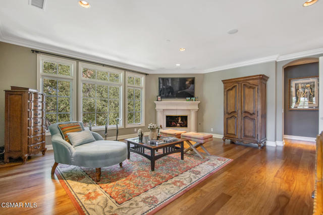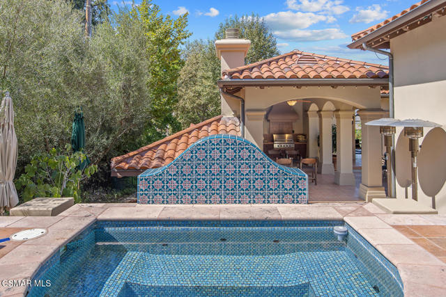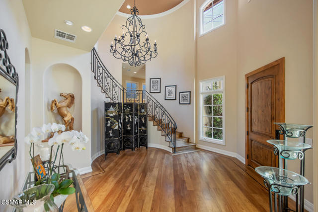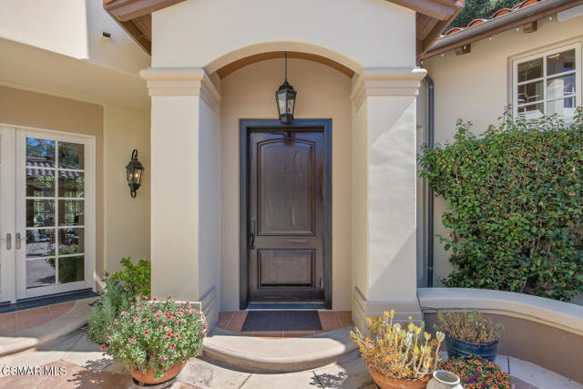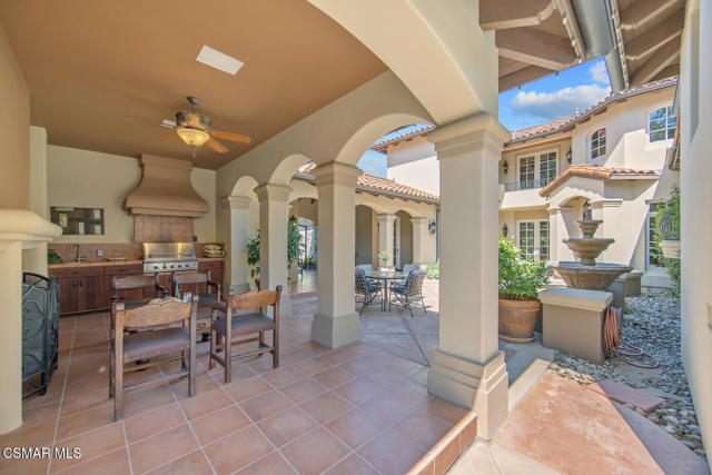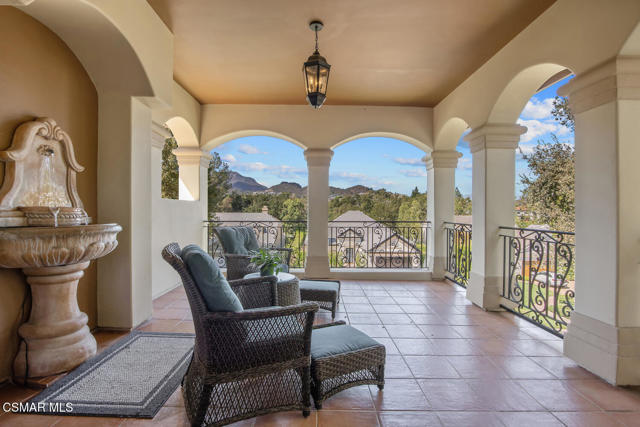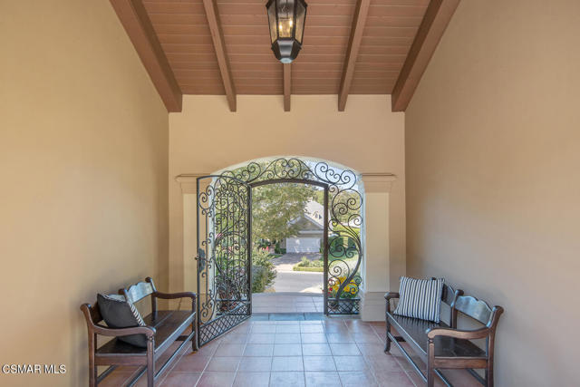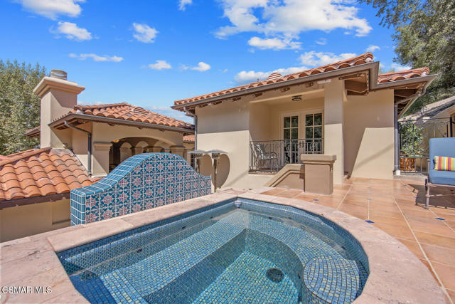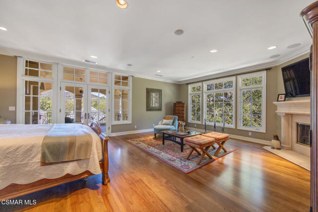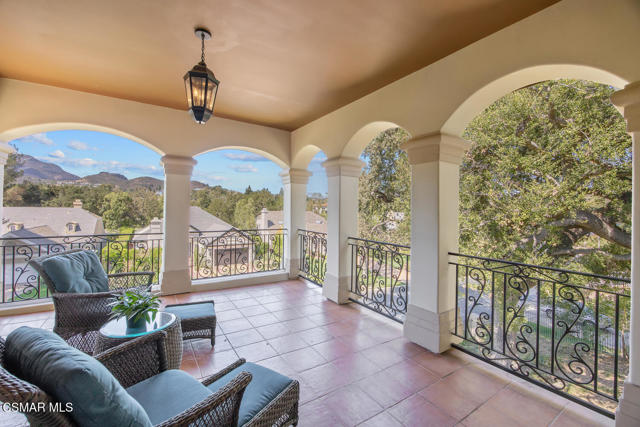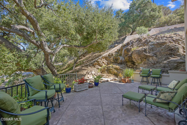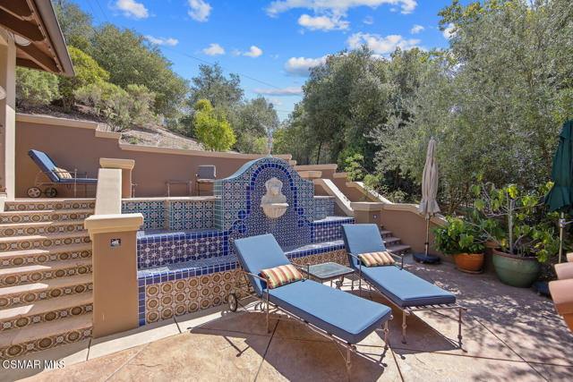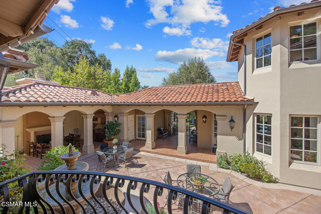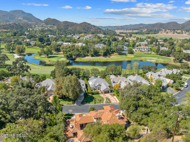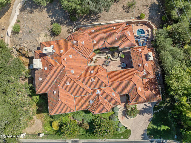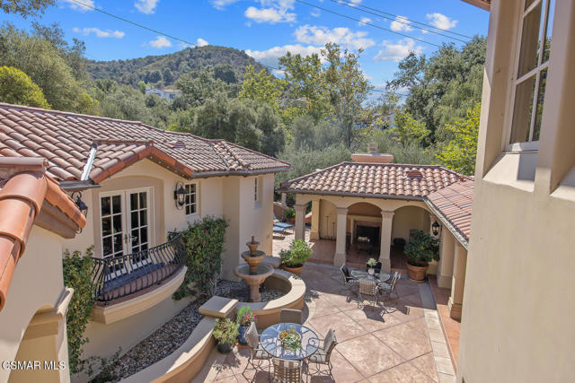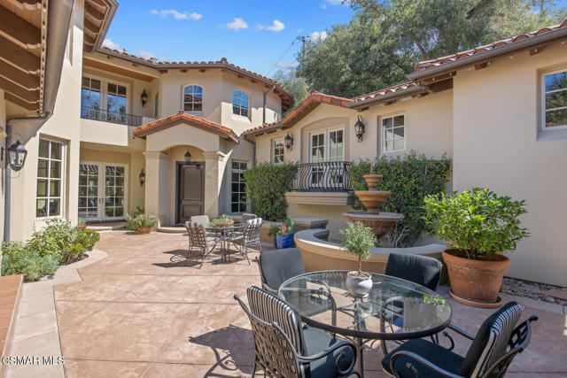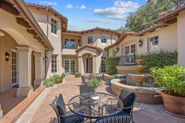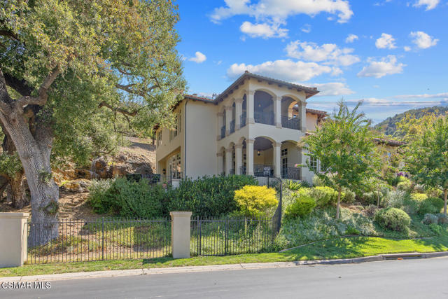 Located behind the 24/7 guard gates of prestigious Lake Sherwood, this stunning custom Spanish estate is a rare offering with NO HOA dues. Designed with luxury living in mind, the 4,248 sq ft home is newer, built in 2002, and is a masterpiece of elegance and warmth. A welcoming courtyard sets the tone, complete with a soothing fountain, covered patio, fireplace, and a built-in BBQ. Entering the home you will be impressed by the grand rotunda entry with a wrought iron curved stairway. The home boasts four spacious bedrooms, all of which have en-suite bathrooms. The enormous great room features a wall of windows and French doors that open to a large patio overlooking views of the lake, majestic oak trees, and a waterfall that cascades directly from natural rock. Both the great room and the primary bedroom feature dramatic coffered ceilings and large custom fireplaces. The chef's kitchen is a dream, designed with two islands, dual sinks, dual dishwashers, granite counters, and top-tier stainless appliances. The formal dining room opens seamlessly to a veranda for indoor-outdoor entertaining. Every bedroom is an ensuite, offering large baths and spacious closets. The primary is exceptionally spacious and features an elegant private patio reminiscent of an Italian villa, dual walk-in closets, and a large bath complete with soaking tub and oversized shower. Outdoors, you can take unwind in the relaxing spa surrounded by mature trees. Enjoy multiple patios which invite relaxation among the wooded grounds which cover a fully fenced 3/4 of an acre, creating a sense of peace and seclusion. The 4-car tandem garage, is thoughtfully designed with a split AC system, a Tesla EV charger and a car lift. This home also offers a newer three zone HVAC system and TONS of storage. Living behind the gates in Sherwood means access to the private park and private playground plus rights to use the lake (boating, swimming, fishing and kayaking). Behind the gates there are two country clubs, one with a world-class golf course. A rare opportunity to own an elegant custom home with no HOA dues behind the gates of Lake Sherwood..