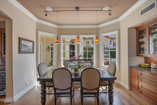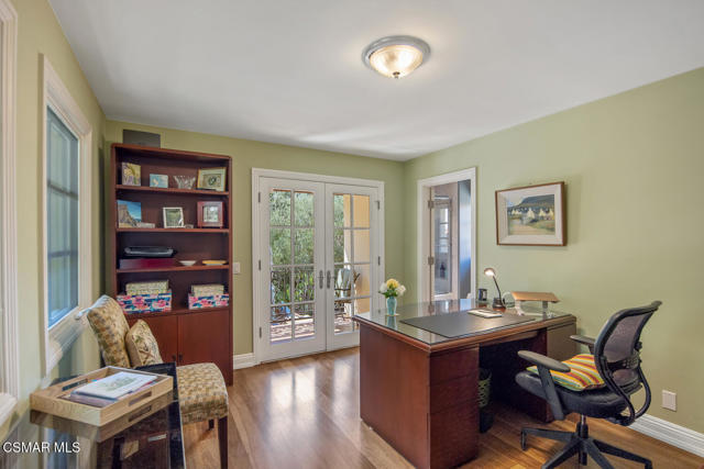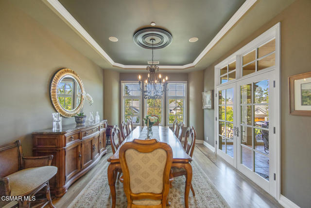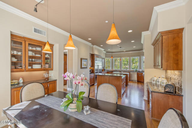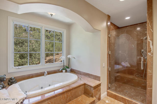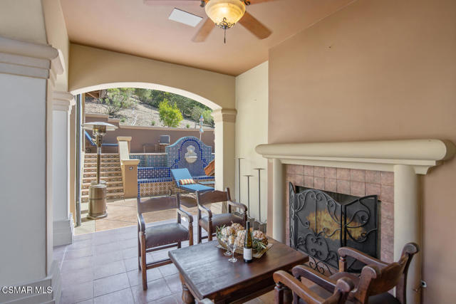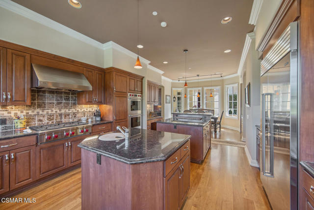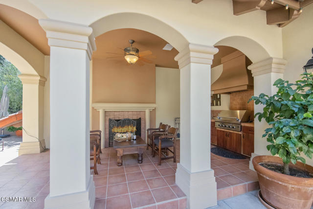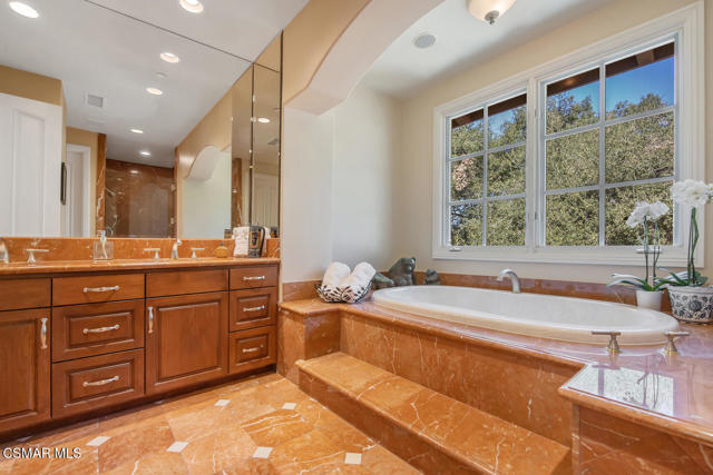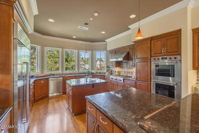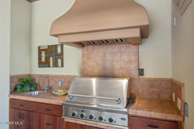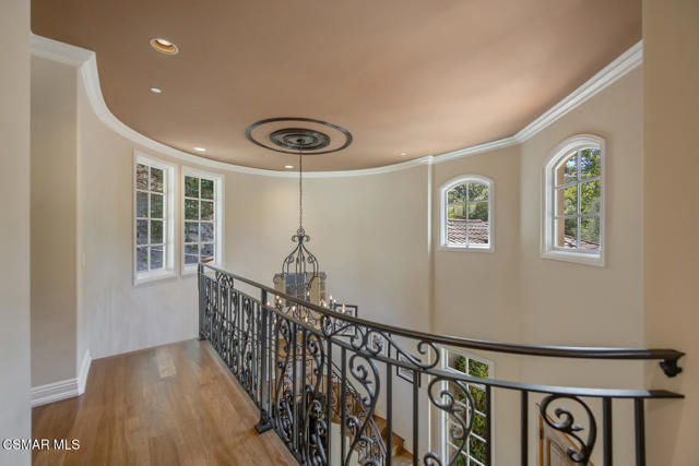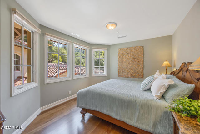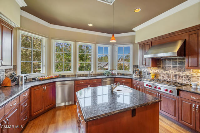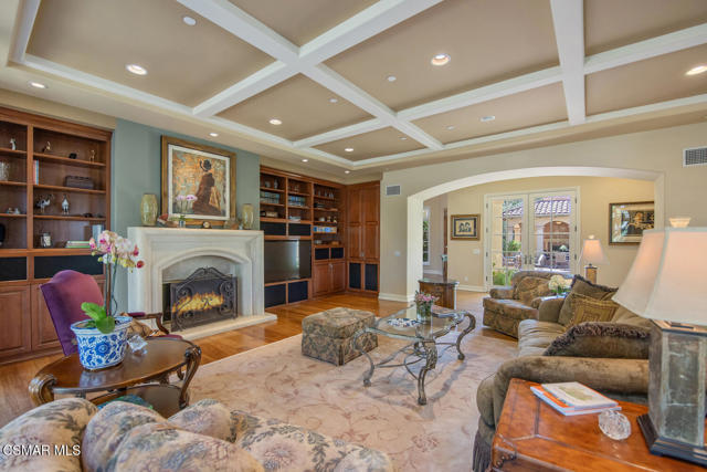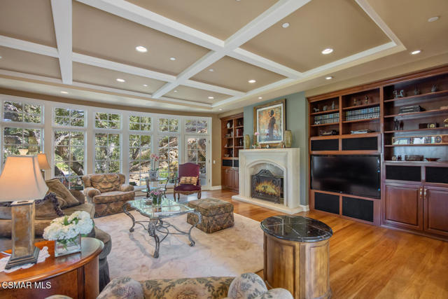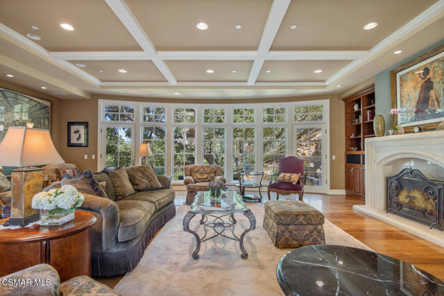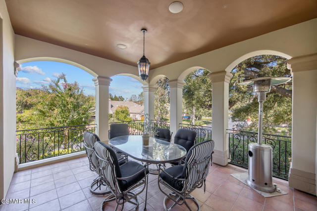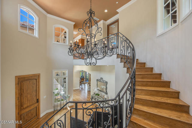 Located behind the 24/7 guard gates of prestigious Lake Sherwood, this stunning custom Spanish estate is a rare offering with NO HOA dues. Designed with luxury living in mind, the 4,248 sq ft home is newer, built in 2002, and is a masterpiece of elegance and warmth. A welcoming courtyard sets the tone, complete with a soothing fountain, covered patio, fireplace, and a built-in BBQ. Entering the home you will be impressed by the grand rotunda entry with a wrought iron curved stairway. The home boasts four spacious bedrooms, all of which have en-suite bathrooms. The enormous great room features a wall of windows and French doors that open to a large patio overlooking views of the lake, majestic oak trees, and a waterfall that cascades directly from natural rock. Both the great room and the primary bedroom feature dramatic coffered ceilings and large custom fireplaces. The chef's kitchen is a dream, designed with two islands, dual sinks, dual dishwashers, granite counters, and top-tier stainless appliances. The formal dining room opens seamlessly to a veranda for indoor-outdoor entertaining. Every bedroom is an ensuite, offering large baths and spacious closets. The primary is exceptionally spacious and features an elegant private patio reminiscent of an Italian villa, dual walk-in closets, and a large bath complete with soaking tub and oversized shower. Outdoors, you can take unwind in the relaxing spa surrounded by mature trees. Enjoy multiple patios which invite relaxation among the wooded grounds which cover a fully fenced 3/4 of an acre, creating a sense of peace and seclusion. The 4-car tandem garage, is thoughtfully designed with a split AC system, a Tesla EV charger and a car lift. This home also offers a newer three zone HVAC system and TONS of storage. Living behind the gates in Sherwood means access to the private park and private playground plus rights to use the lake (boating, swimming, fishing and kayaking). Behind the gates there are two country clubs, one with a world-class golf course. A rare opportunity to own an elegant custom home with no HOA dues behind the gates of Lake Sherwood..