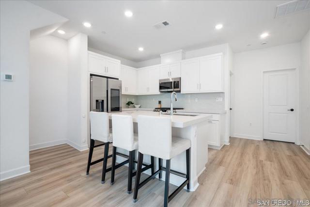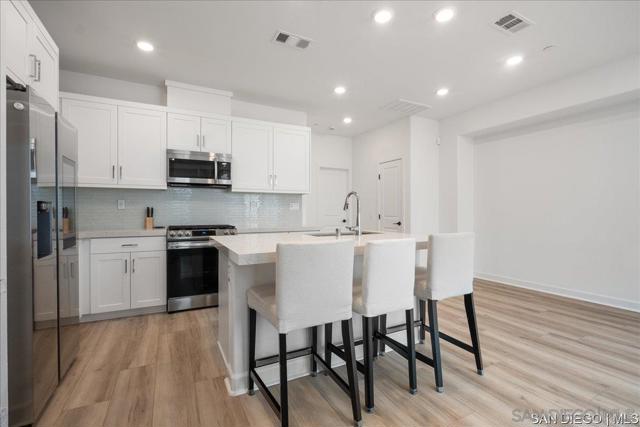 Nestled in the desirable neighborhood of Otay Mesa, this condo offers ease of access to major freeways, shopping, dining, parks, and all the amenities you expect. This very clean, beautifully loved home, is bright with natural light and sleek finishes throughout all 3 bedrooms and 3 full bathroom areas. This thoughtfully designed living space also includes an optional bedroom, office, den, or entertainment center on the first floor. The gourmet kitchen is outfitted with contemporary cabinetry, stone countertops, and high-end stainless steel appliances, ideal for entertaining. Newly built construction homes means modern systems, energy efficiency, and minimal maintenance. Additionally, this home also offers leased solar panels in which the new buyer can opt into purchasing them outright and receive up to 30% tax credit should they choose, otherwise, they can continue to lease the solar panels and pay a monthly minimum amount while enjoying a full capacity of electricity. Enjoy this bright and open floor plan with comfort, style, and functionality today!