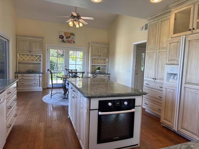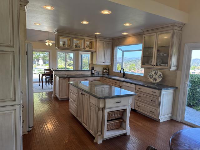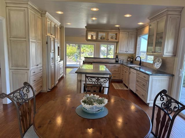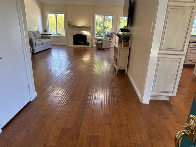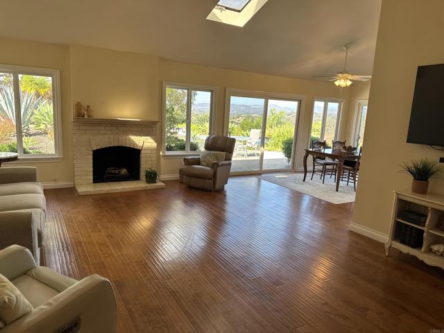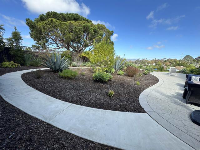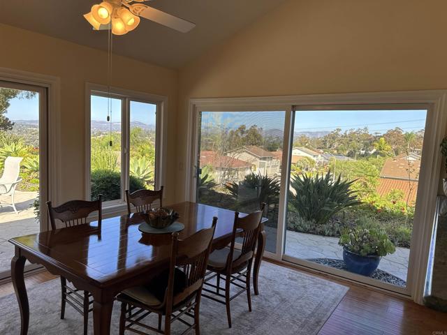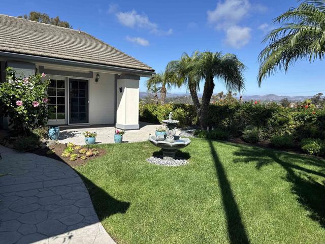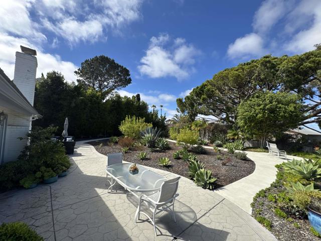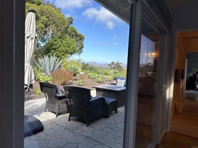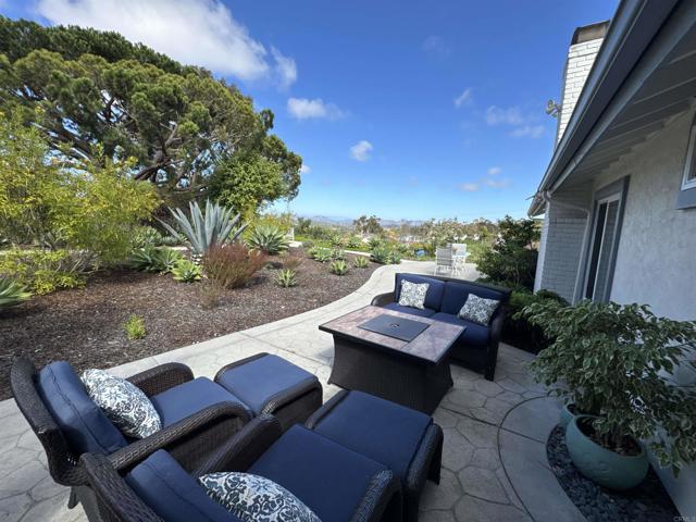 Rarely available single-level home in the heart of Solana Beach with panoramic 180° views of the Rancho Santa Fe hills and beyond. This former model showcases vaulted ceilings with exposed beams, wide-plank hardwood floors, and an open-concept layout filled with natural light. The reimagined chef’s kitchen features custom cabinetry, premium appliances, and a spacious island. The primary suite offers vaulted ceilings, direct access to the backyard, and a recently updated bath with walk-in shower, bench, and luxury vinyl flooring. Enjoy seamless indoor-outdoor living with a lush yard, paved garden paths, and tranquil sitting areas to take in the view. Conveniently located near top-rated schools, beaches, Del Mar Racetrack, dining, and shopping. A rare opportunity to experience the Solana Beach lifestyle.
