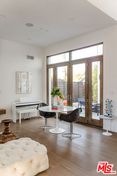 Situated on a beautiful tree-lined street in Larchmont Village awaits this stunning, warm contemporary estate. Thoughtful design combined with top-of-the-line finishes make this home an absolute dream. Set behind gates and lush landscaping, the home provides a serene & private environment for residents. At the heart of the home is the gorgeous chef's kitchen complete with Sub-Zero and Wolf appliances, walk-in pantry, wine display, eat-in center island, and extensive cabinetry. The main living space is accented by floor-to-ceiling glass doors which seamlessly flow to the backyard oasis with a sparkling pool. Ascend to the second level where you will find three well-appointed guest suites and the stunning primary with walk-in closet, private balcony, & spa-like bath. Additional home features include smart home technology, Hollywood sign views, interior courtyard for al fresco living / dining, luxurious first-level powder room, tranquil front patio, laundry room, garage with bonus driveway parking, and so much more! Ideally situated, this home is just a stone's throw from the best shops, restaurants, and entertainment on Melrose and Beverly.